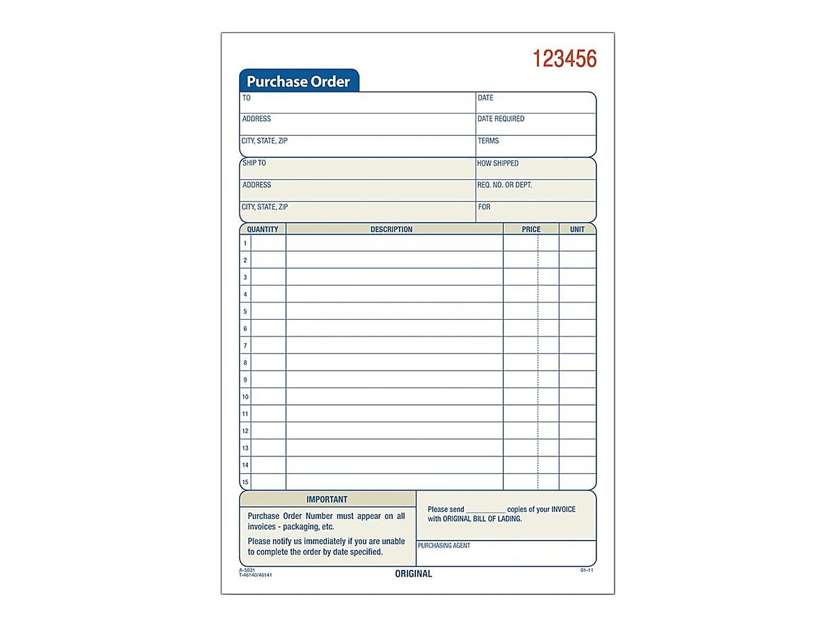 Adams 2-Part Carbonless Purchase Requisitions, 8.44"L x 5.56"W, 50 Sets/Book, 10/Box