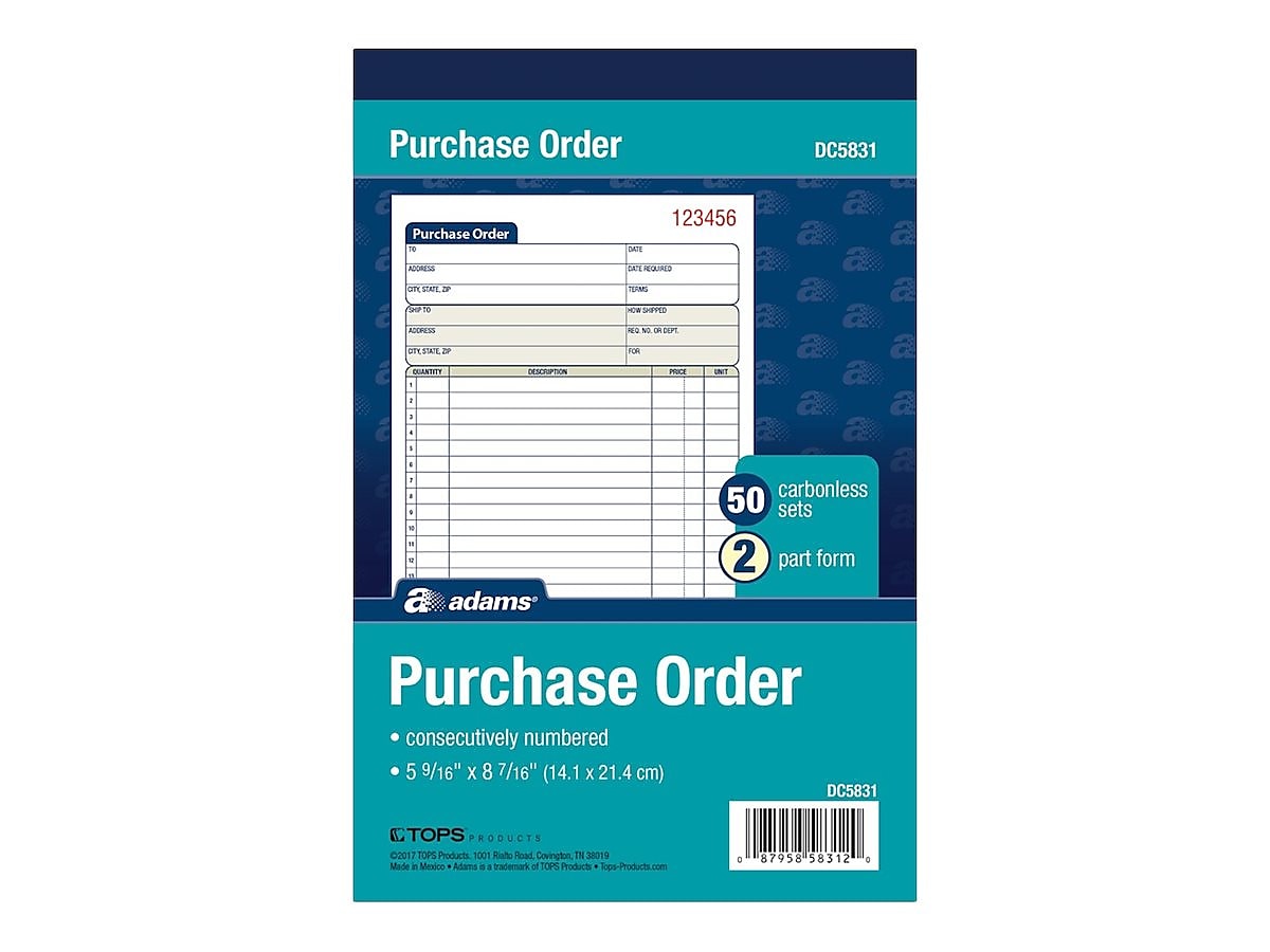 Adams 2-Part Carbonless Purchase Requisitions, 8.44"L x 5.56"W, 50 Sets/Book