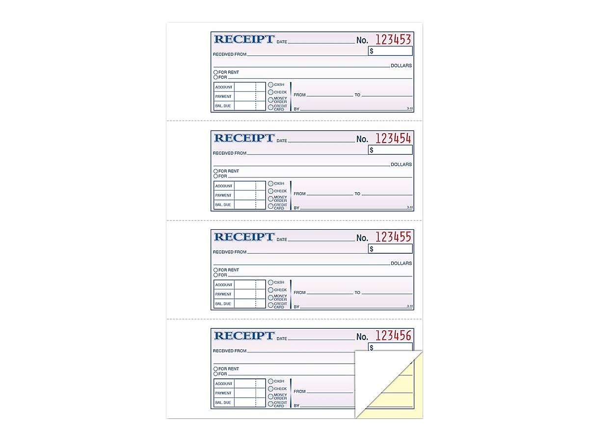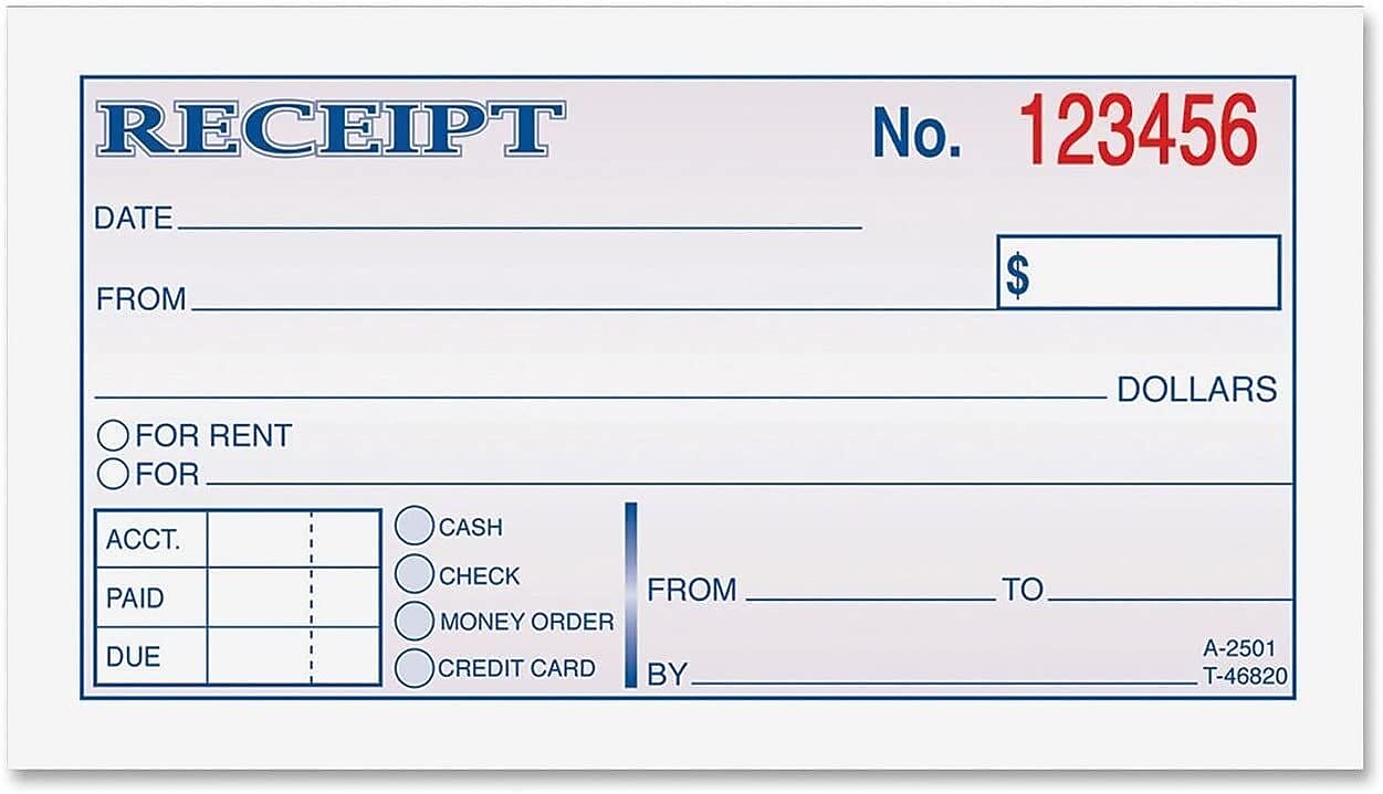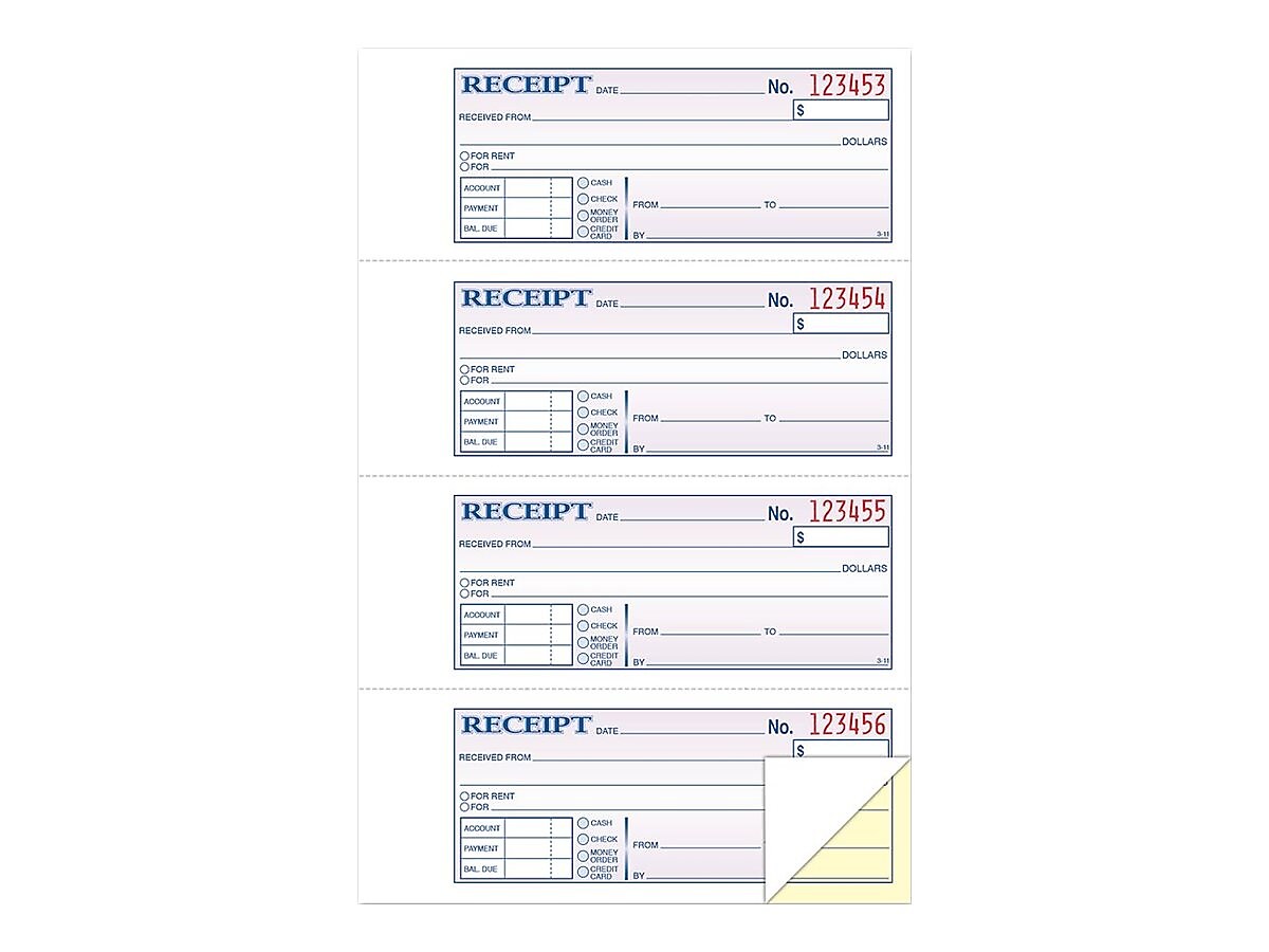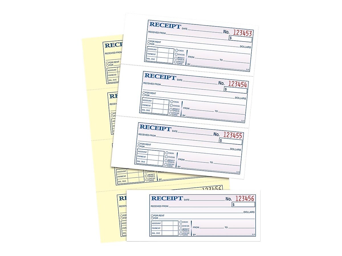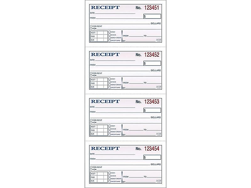 Adams 2-Part Carbonless Receipts Book, 2.75" x 4.88", 50 Forms/Book