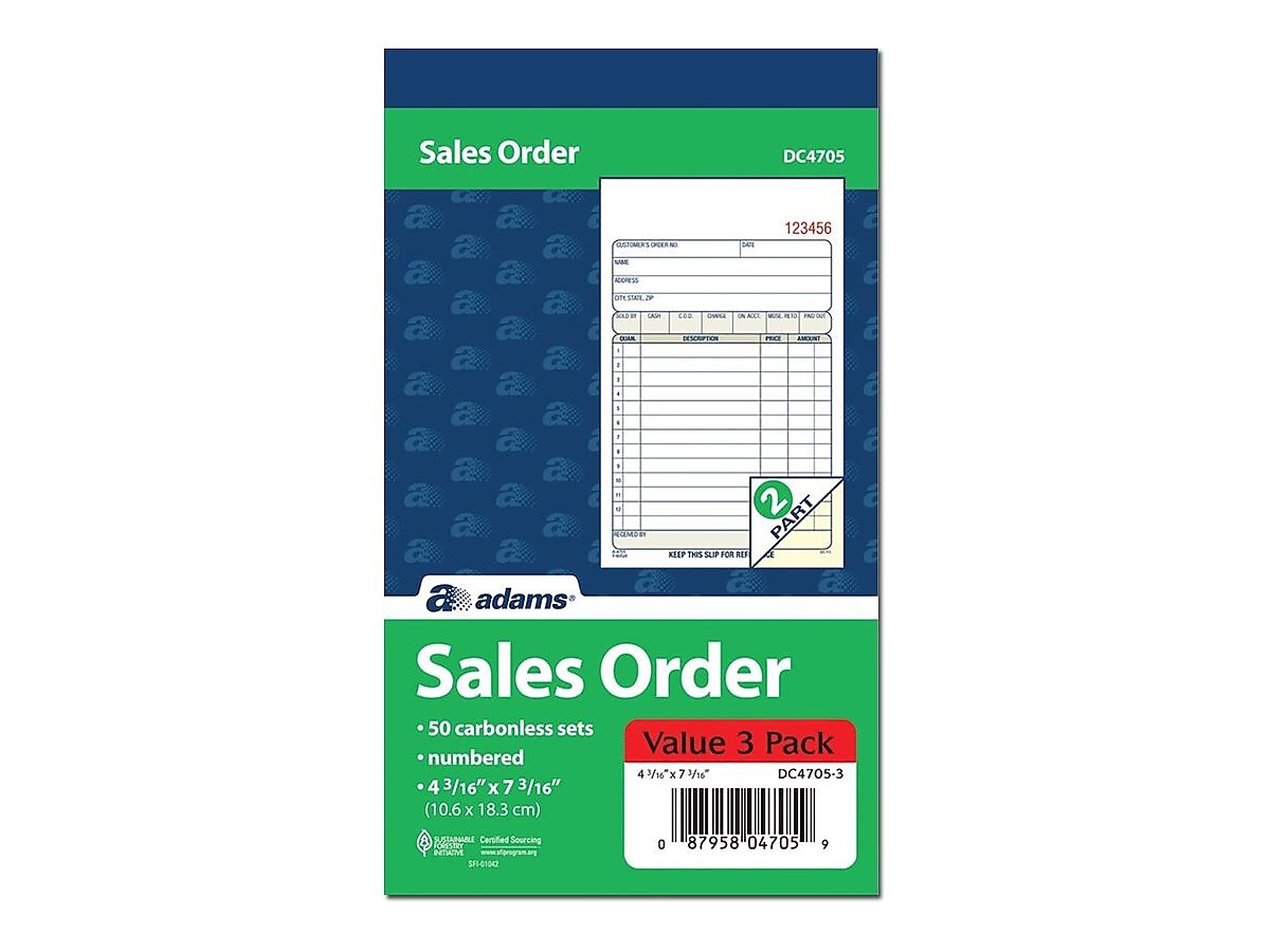 Adams 2-Part Carbonless Sales Orders, 4.19"W x 7.19"L, 50 Sets/Book, 3