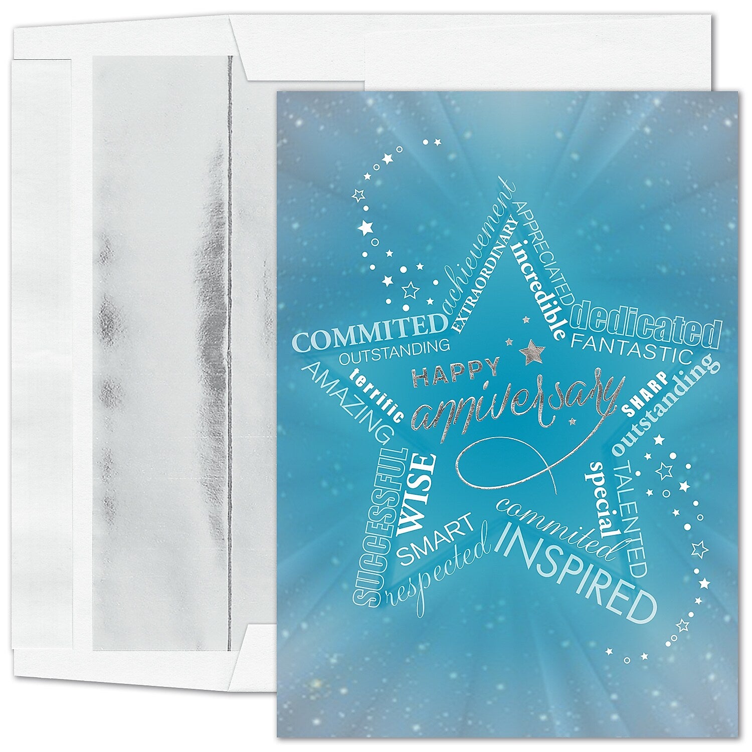 "Happy Anniversary Star" Card w/ Silver Lined White Envelope, 100/BX