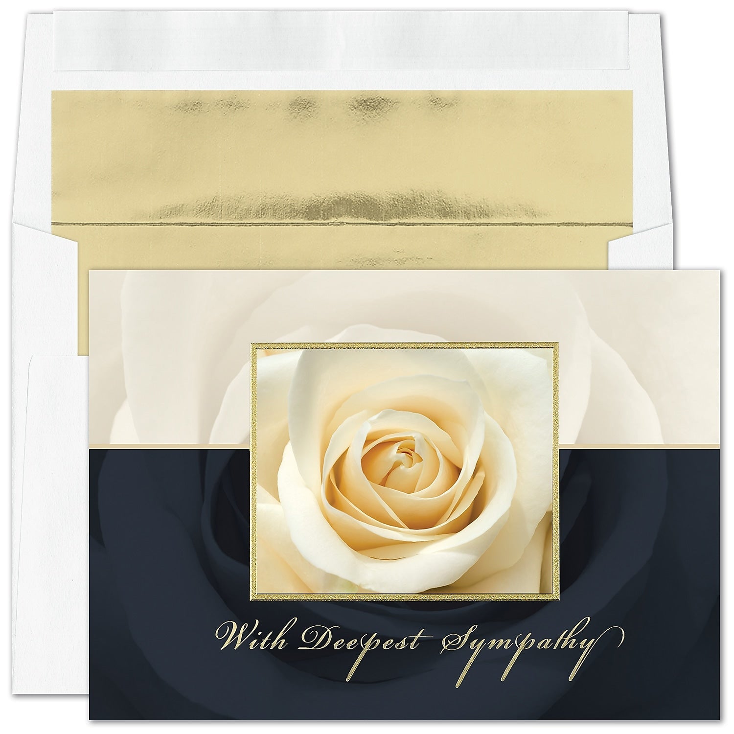 "Ivory Rose" Sympathy Card w/ Gold Lined White Envelope, 50/BX
