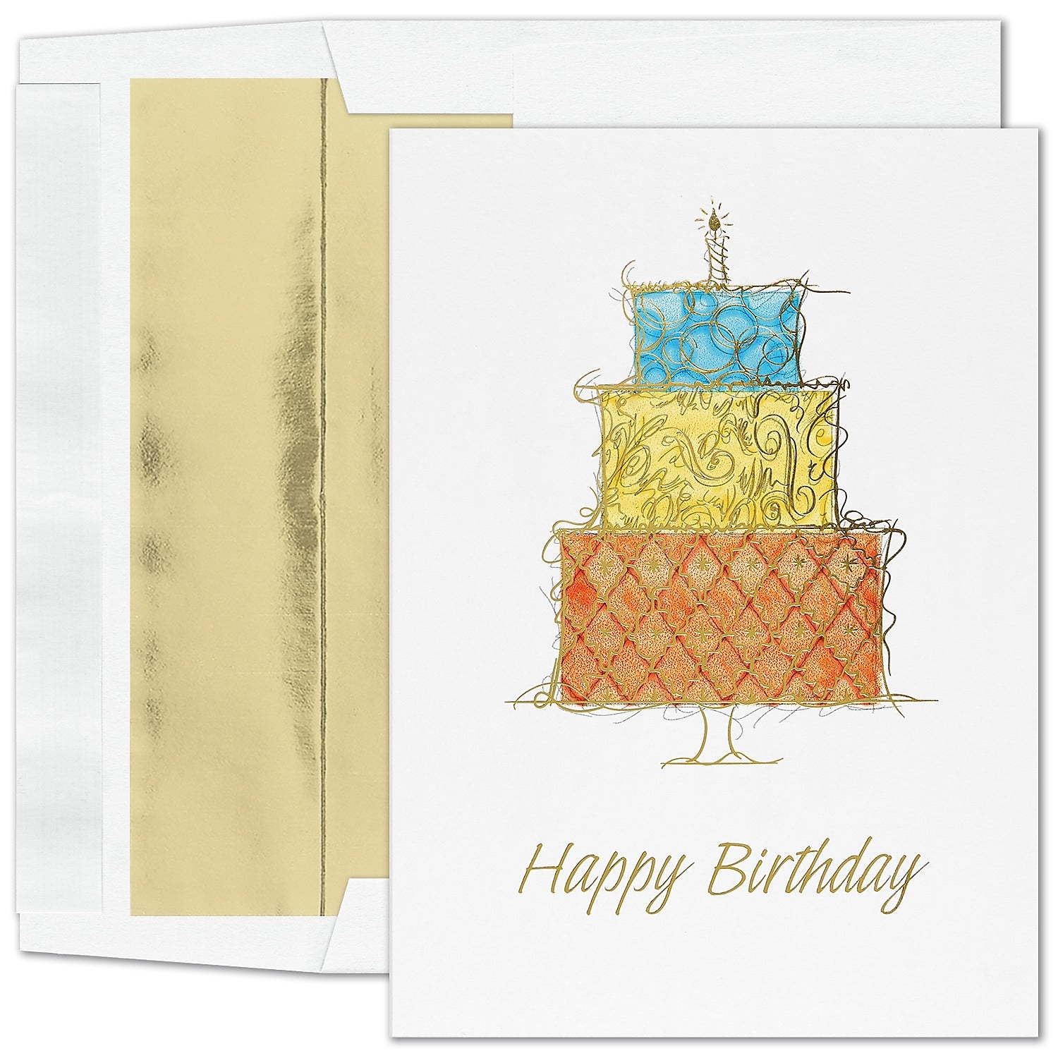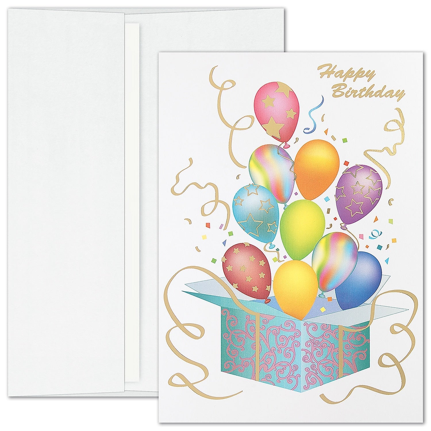 "Ornate Birthday" Birthday Card w/Gold Lined White, 100/BX