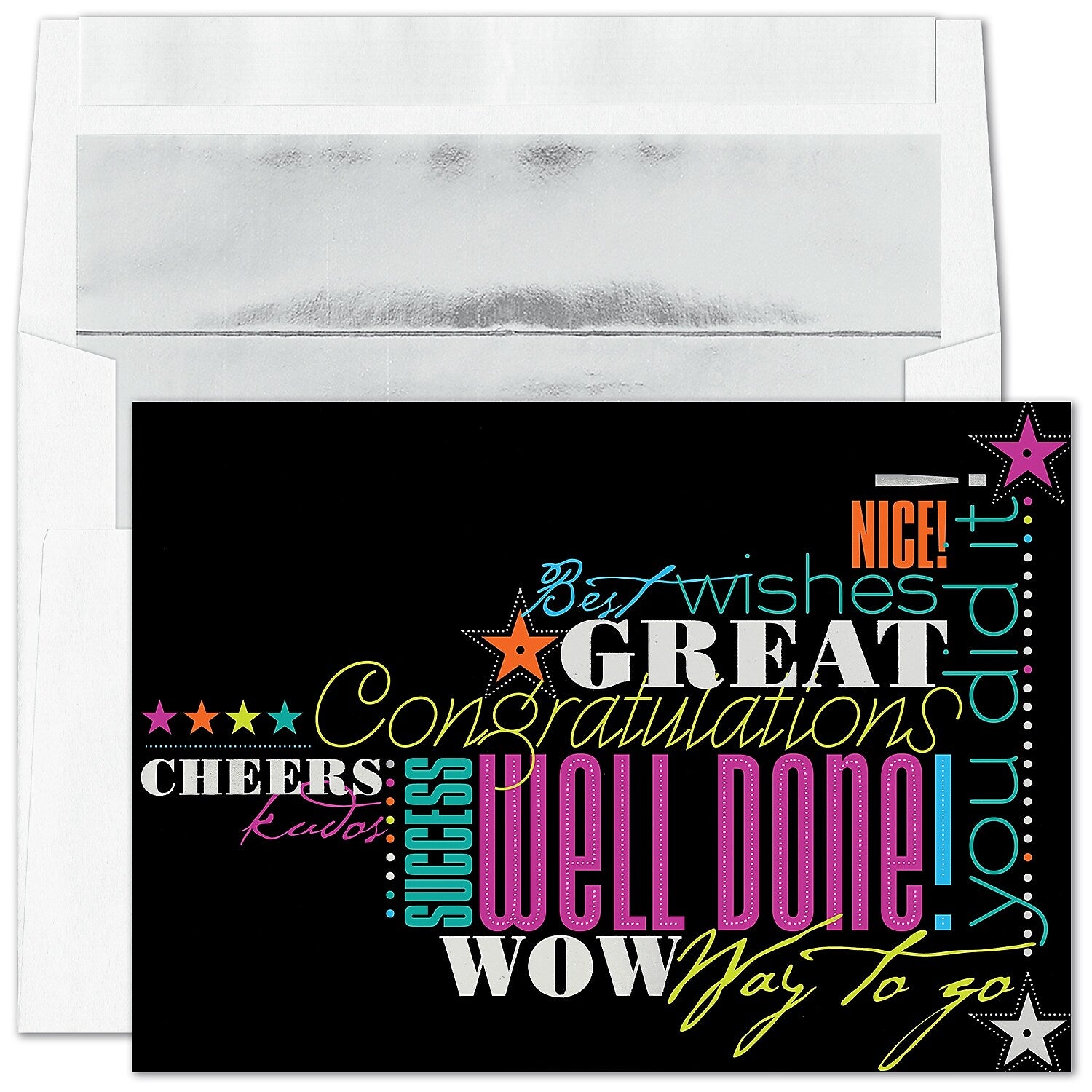 "Many Cheers" Congratulations Card w/ Silver Lined White Envelope, 25/BX