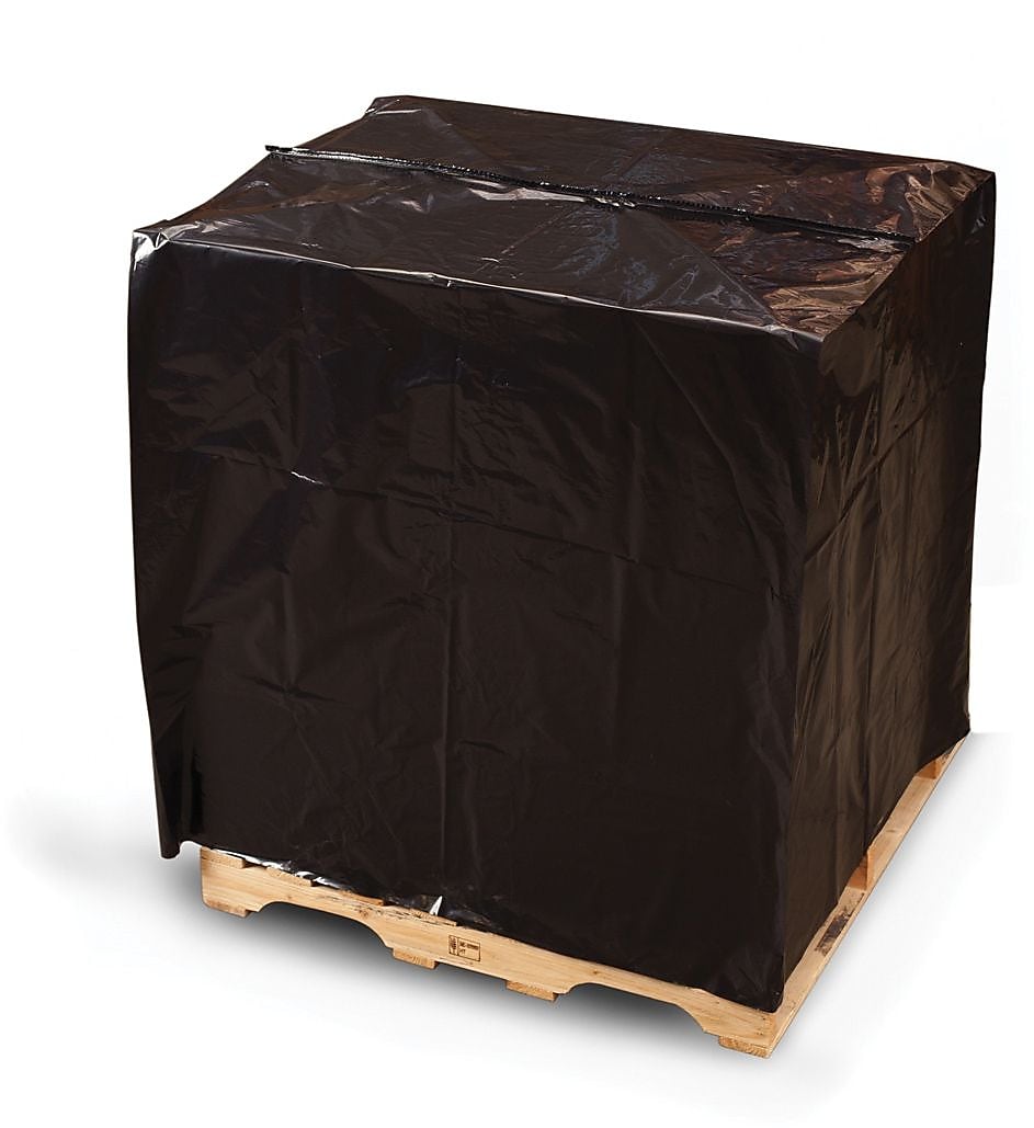 Pallet top cover in black color of 3 mil thick features tubular construction with strong bottom seal and offers easier dispensing with perforations between bag. Used for covering pallets. 51" x 49" x 85", sold as 35 per roll.
