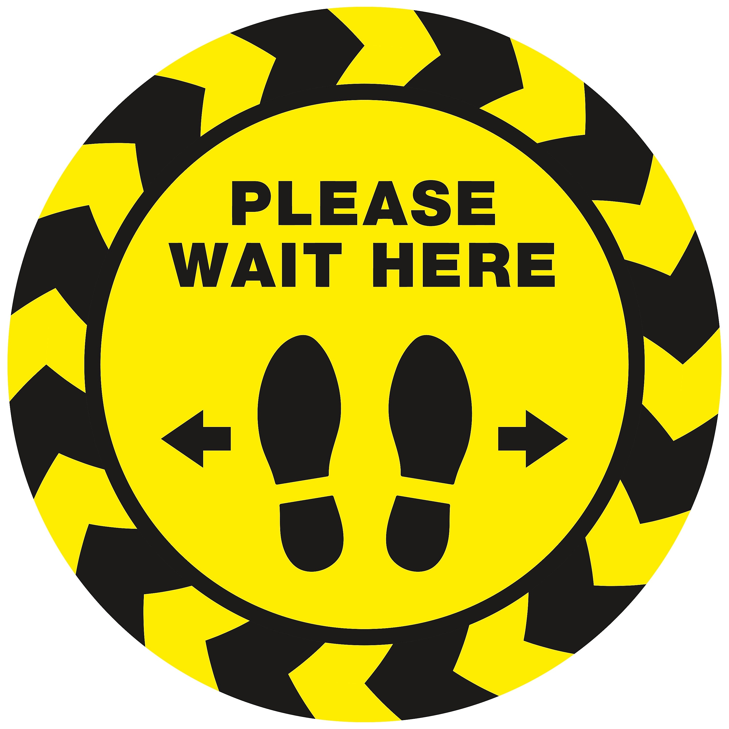 Avery Directional "Please Wait Here" Preprinted Floor Decals, 10.5" Diameter, Yellow/Black, 5/Pack