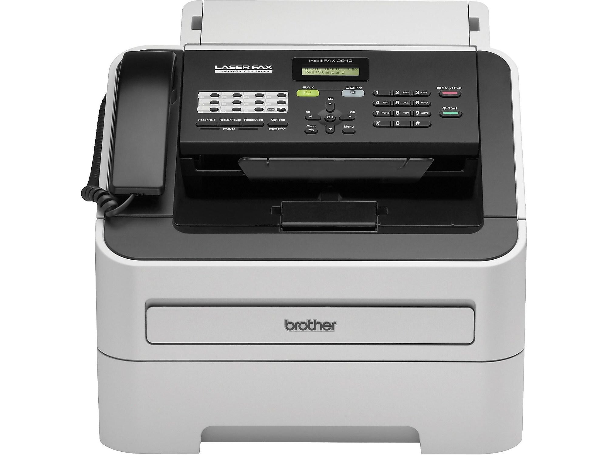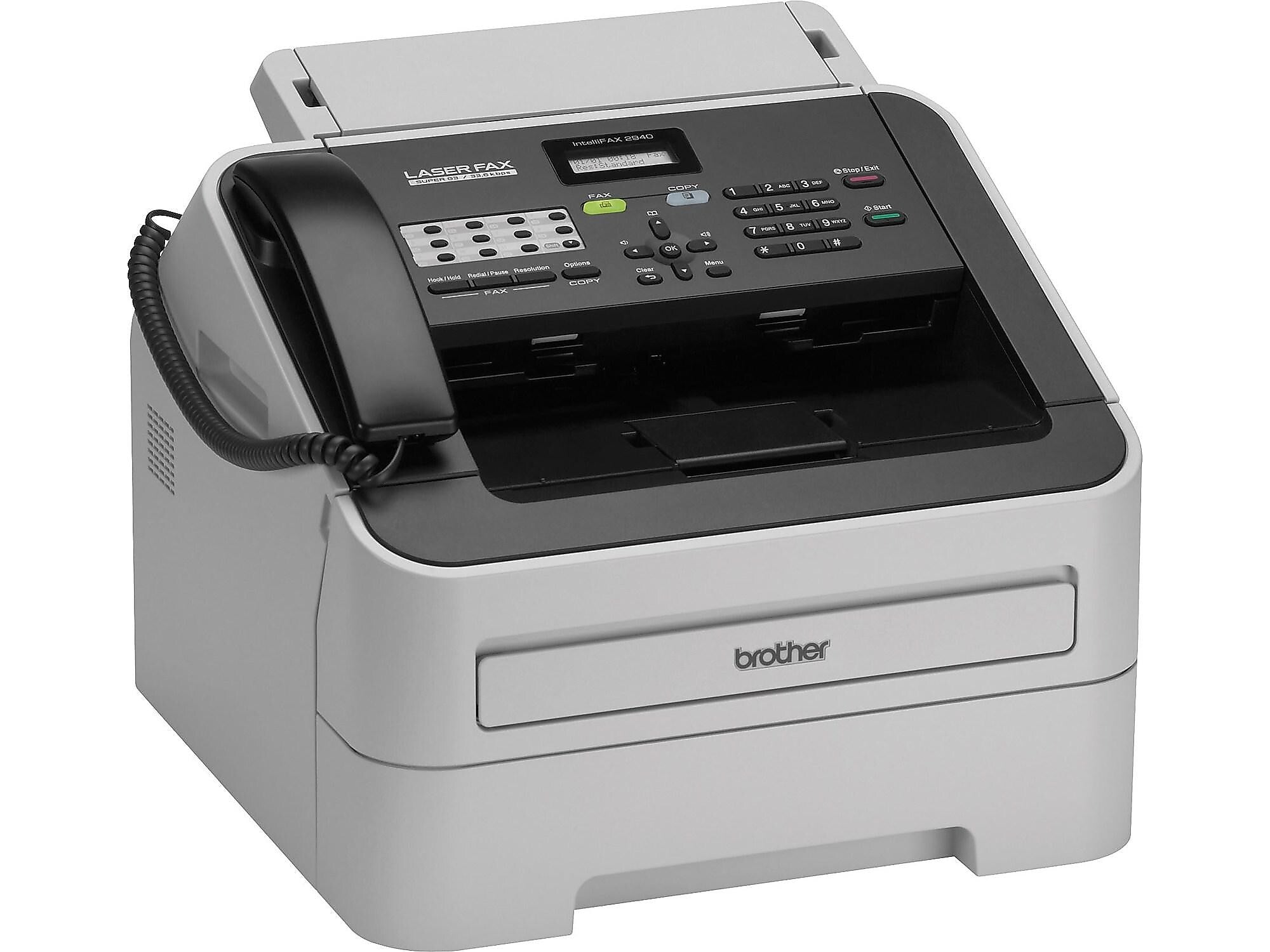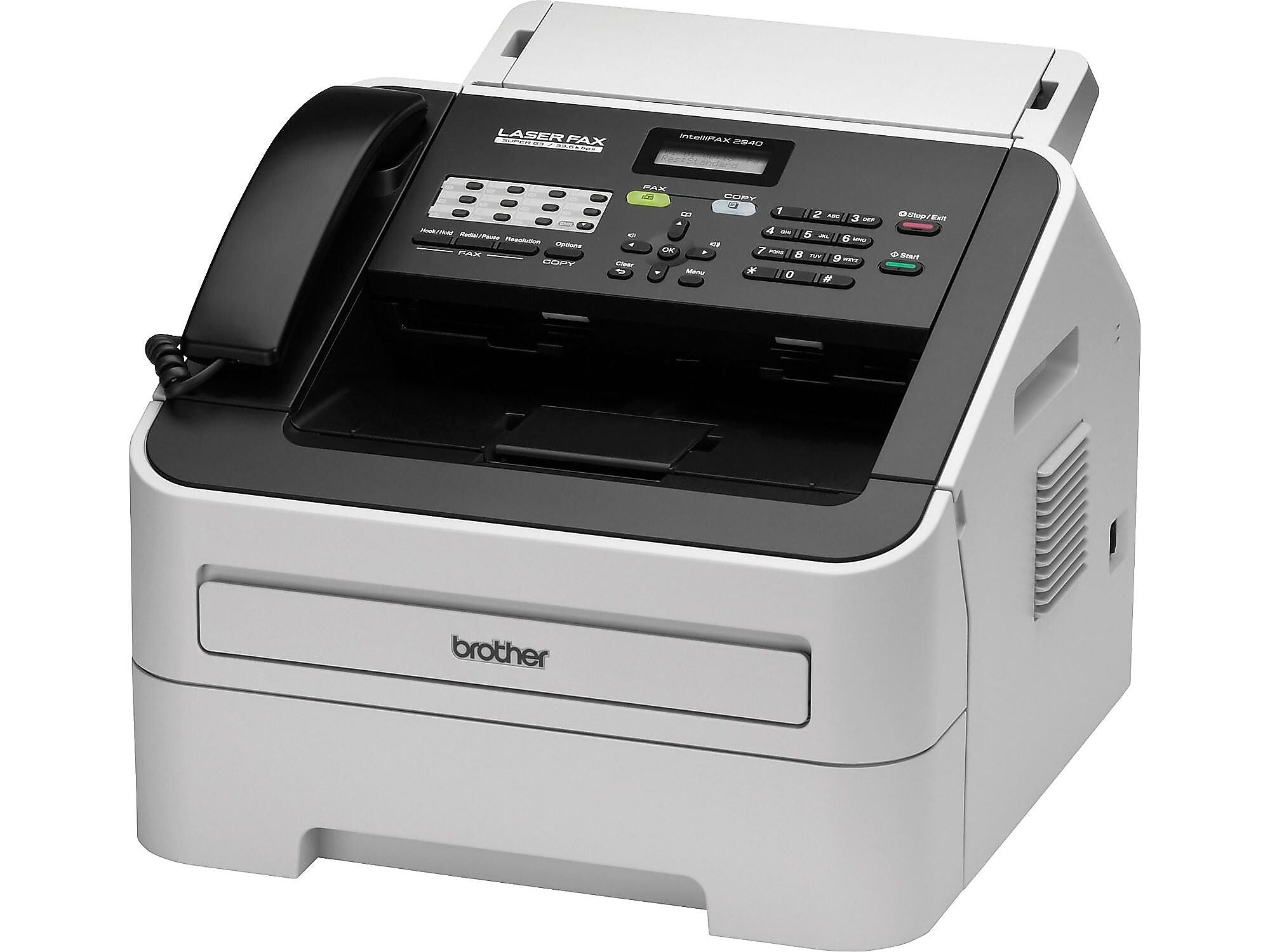 Share contracts, forms, applications and other paperwork with this fax machine. The 30-page automatic document feeder lets you send or copy multipage documents in a single pass, while the 250-sheet adjustable tray provides a steady flow of paper when receiving transmissions. A 33.6Kbps fax modem offers speeds of up to 2.5 pages per second, so you can complete large faxes quickly and efficiently. The backlit LCD screen and simple controls make it easy to enter numbers and choose from available functions. This fax machine is equipped to create copies for added versatility. Use the 22 one-touch dial locations and 200 speed dial options to pull up frequently used numbers. Featuring a traditional handset, this Brother IntelliFAX fax machine switches from fax to phone effortlessly whenever you need to place a quick business call.