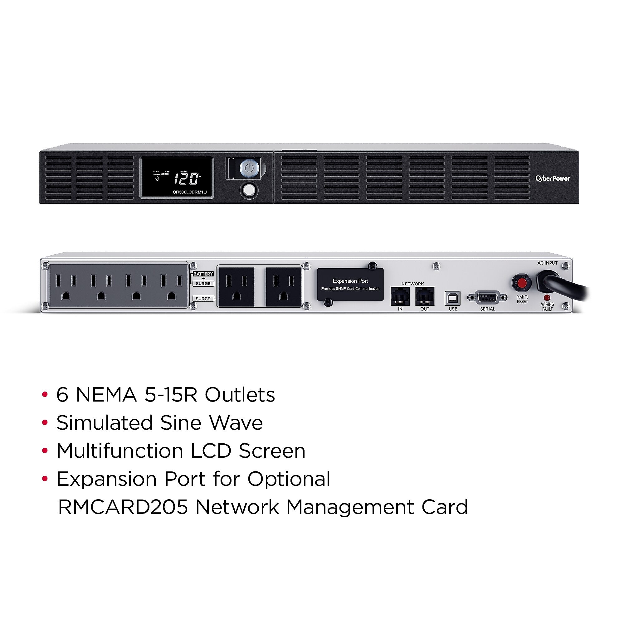 This 1U rackmount uninterruptible power supply (UPS) provides battery backup power and surge protection for connected equipment including servers, network devices, workstations, and telecom installations. Additional features include automatic voltage regulation (AVR) to correct minor fluctuations in utility power without switching to battery mode and a multifunction LCD to keep you informed about power conditions. The UPS also offers remote management capabilities with an optional network management card. The Smart App LCD OR500LCDRM1U comes with a three-year warranty (including coverage of batteries) and a $300,000 lifetime connected equipment guarantee.