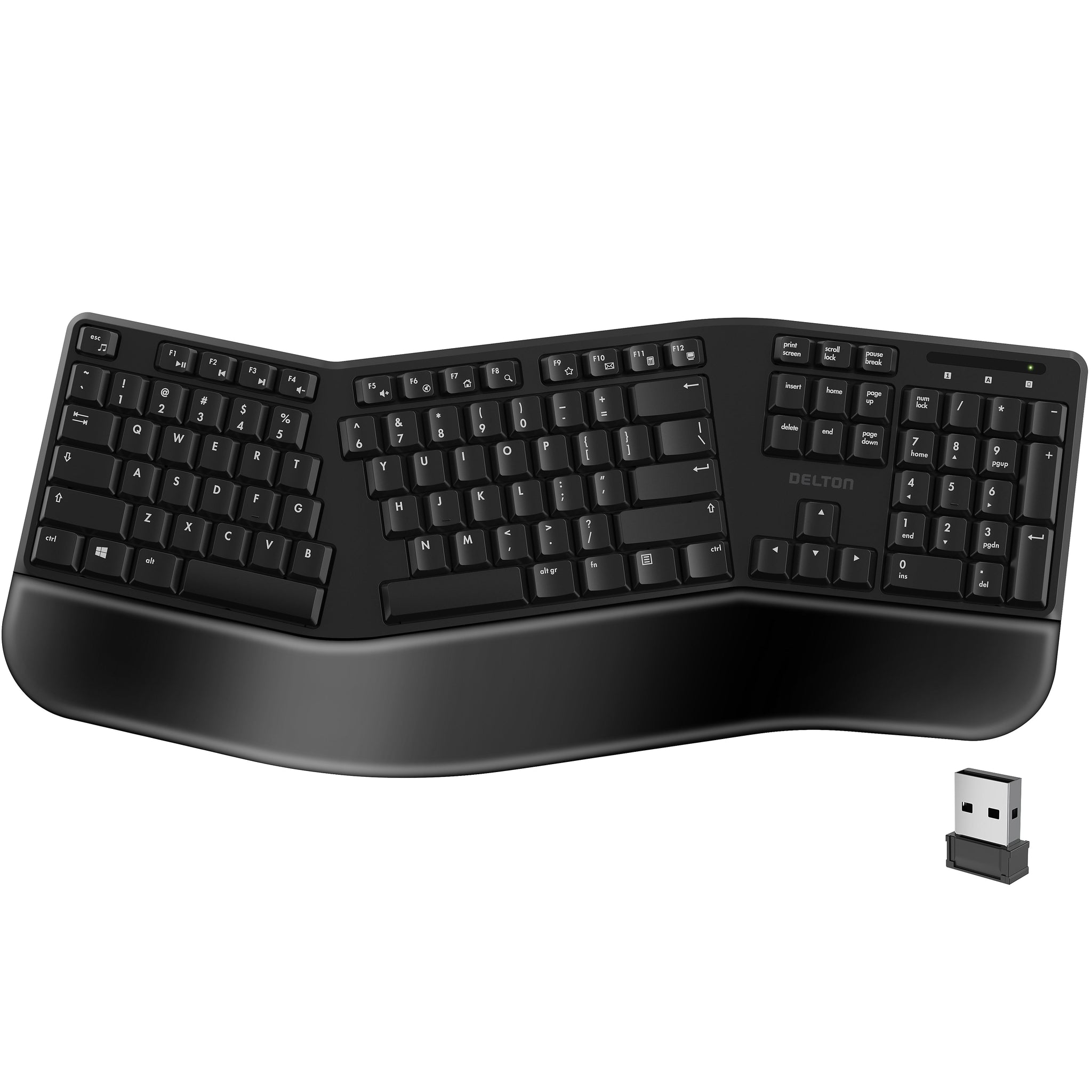 Embark on the path to eliminate pain with this science driven, curved, split keyframe ergonomic computer keyboard. The Delton KB200 wireless keyboard is designed for comfort and productivity. With a cushioned wrist support and a key layout that promotes a neutral and healthy posture for your hands, the KB200 ensures you enjoy the ultra-precise typing experience you expect with the added bonus of reduced fatigue and lower muscle stress. Make your daily computer use more comfortable.