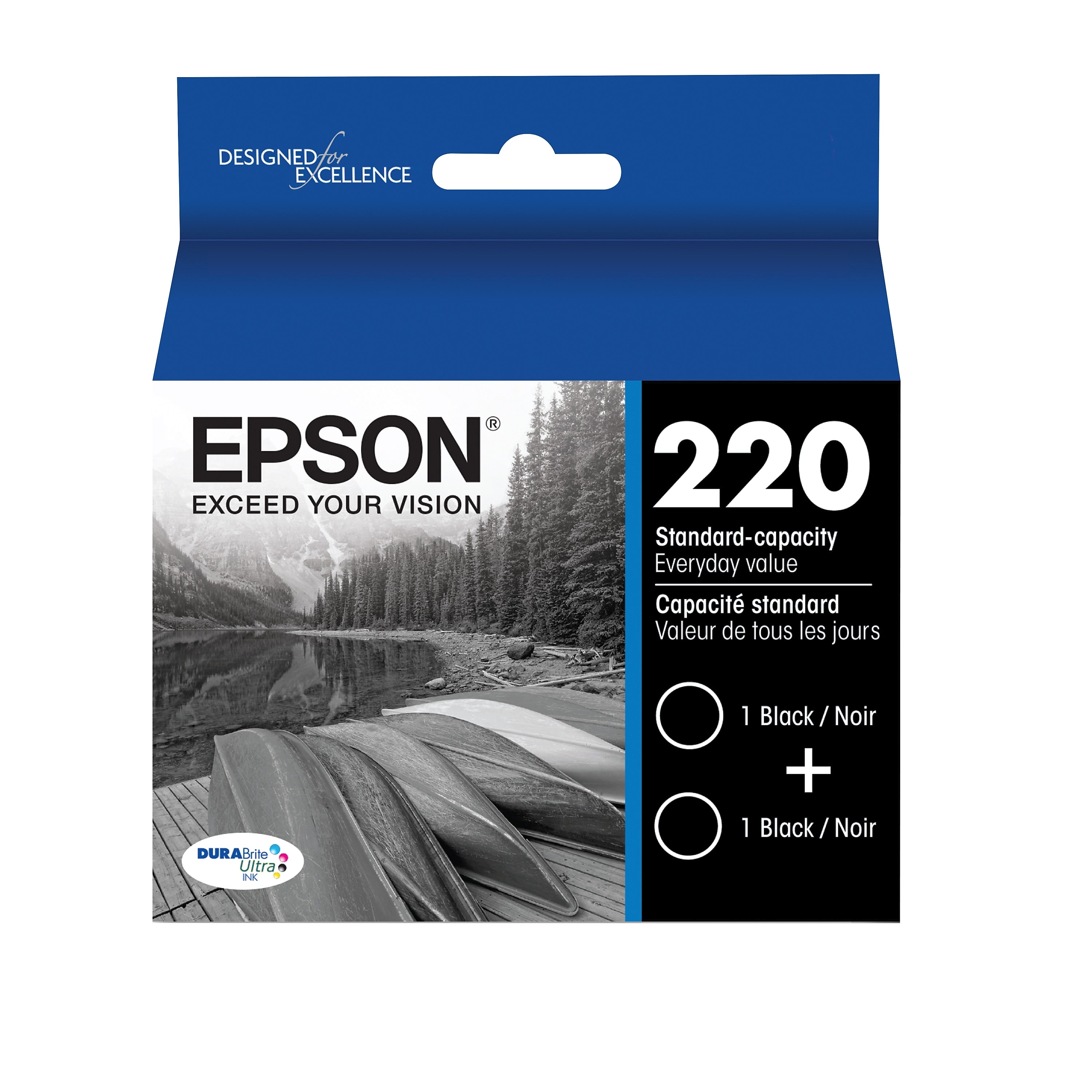 Load these black ink cartridges in your printer to efficiently handle daily printing tasks. Delivering crisp, smudge-free results using DURABrite Ultra ink, each cartridge is ideal for printing documents, reports or other information. These Epson black ink cartridges are compatible with select Epson printers for quick replacement without effort. Epson 220 Ink cartridges with quality for your important documents and presentations. The combo pack contains: 2 Epson 220 Standard Black ink cartridge.