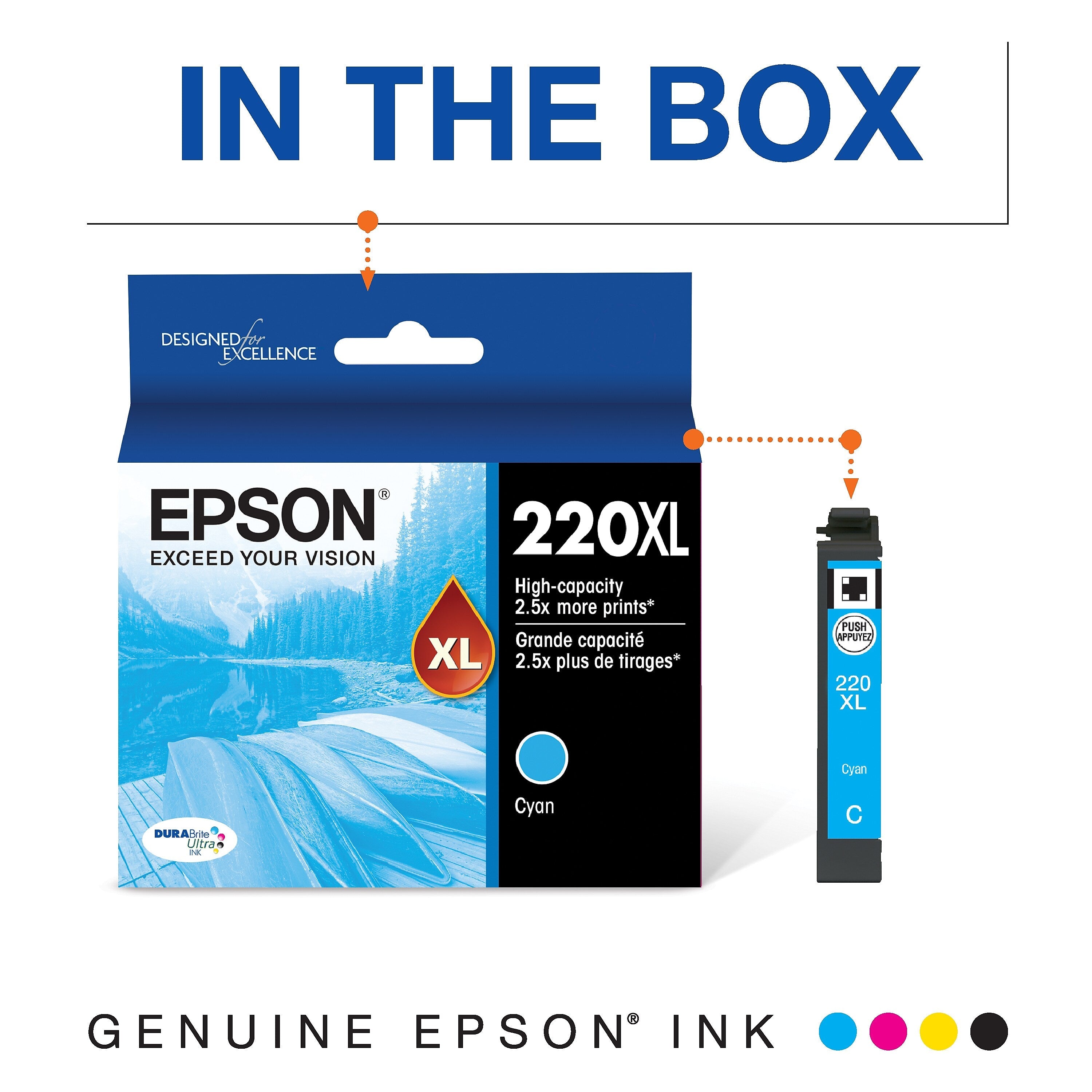 Install this ink cartridge in your compatible printer to maintain exceptional print quality. The unique ink formula resists smudging, fading and moisture damage, while the rich color enhances photos, charts and other documents. This Epson DURABrite Ultra 220XL high capacity ink cartridge features a simple design for effortless installation.