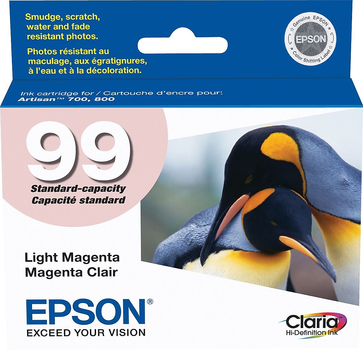 Protect prints from smearing and streaks with this light magenta ink cartridge. The standard yield lets you tackle daily printing tasks, while the light magenta ink delivers vibrant, colorful text and images. This Epson 99 ink cartridge is compatible with select Epson Artisan printers and is simple to install for quick, easy setup.