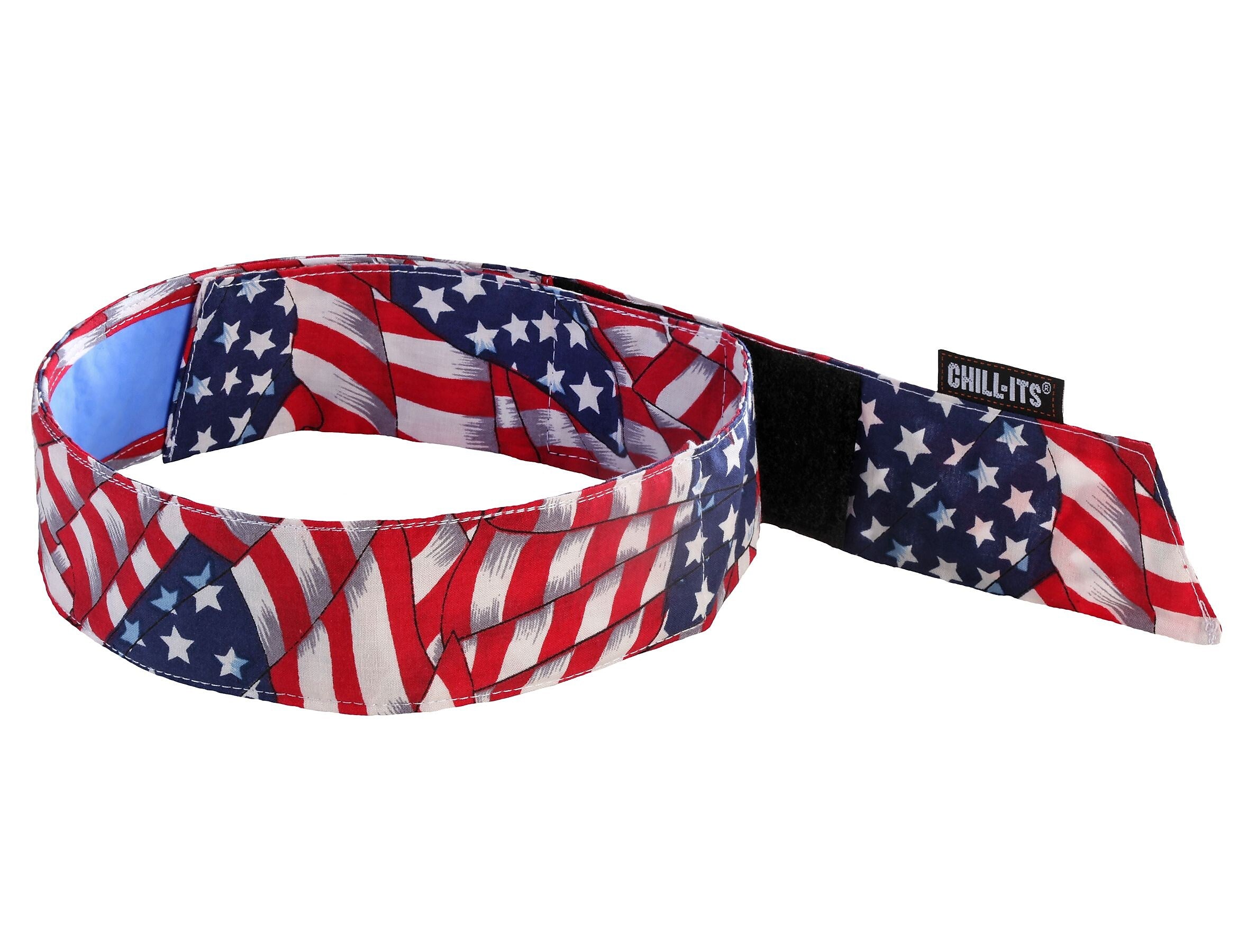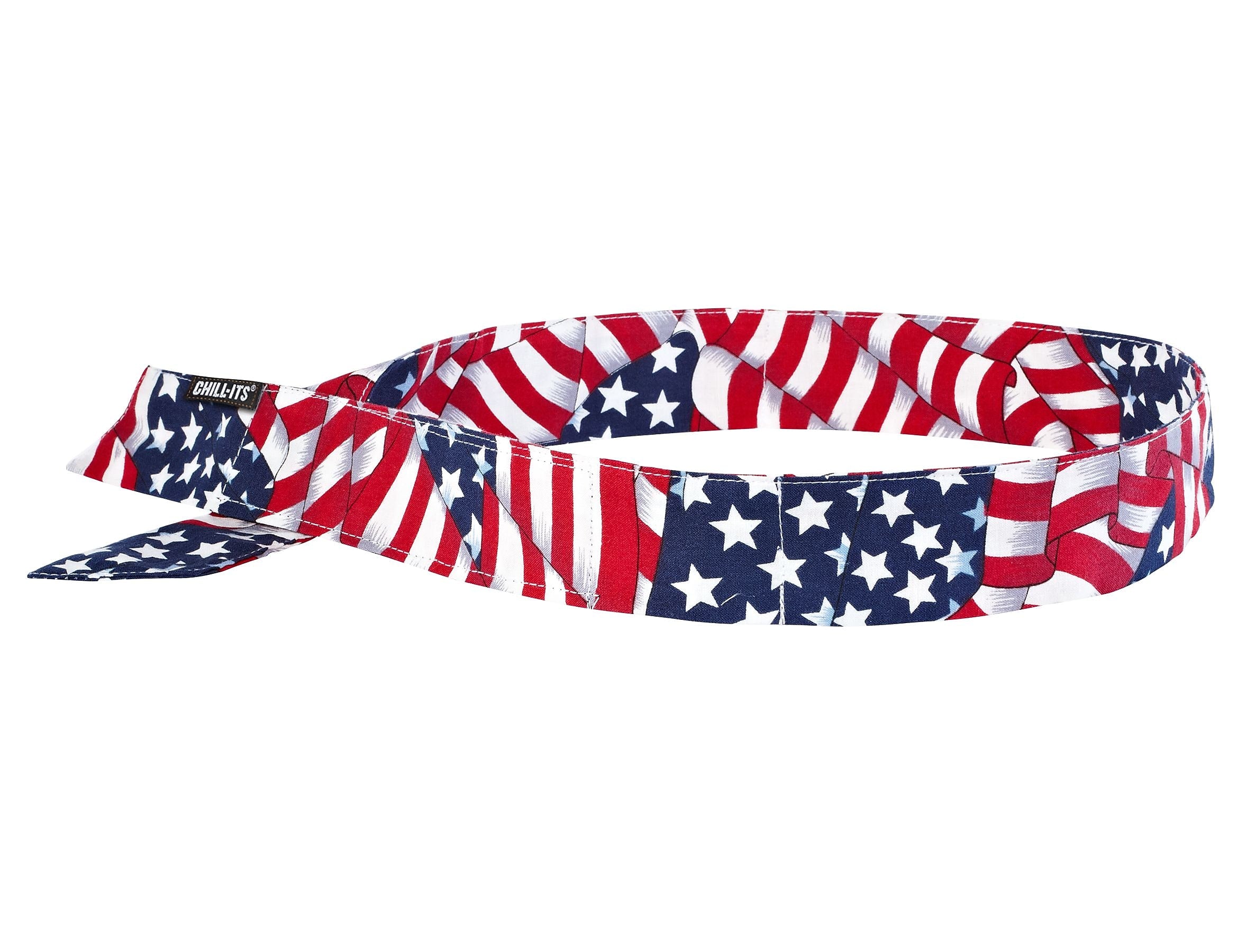 Ergodyne Chill-Its® 6705 Stars & stripes evaporative cooling bandana gets activated by soaking in water for 2 - 5 min remains hydrated for up to 4 hrs. Bandana is easy to use and is ideal for construction, trade or maintenance applications.