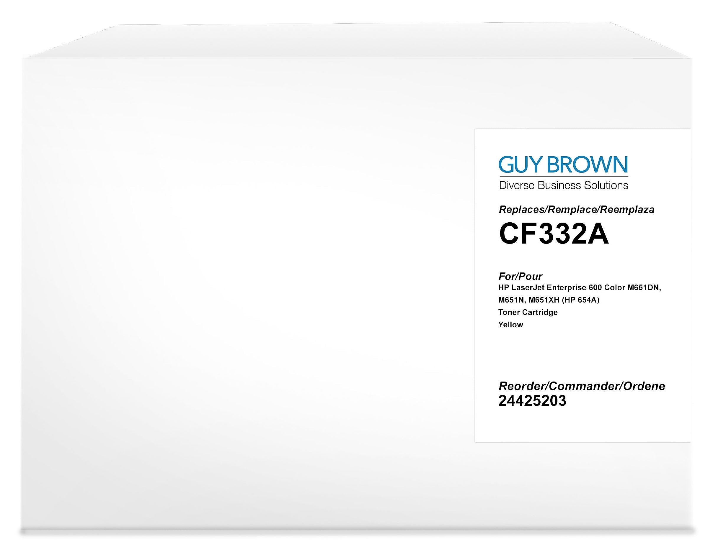 Handle high-volume print jobs seamlessly with this yellow toner cartridge. A 15000-page yield means fewer interruptions as you print, while the vivid color stands out for striking results. This Guy Brown remanufactured HP 654A yellow toner cartridge boasts a simple design for effortless installation in compatible HP LaserJet Enterprise printers.