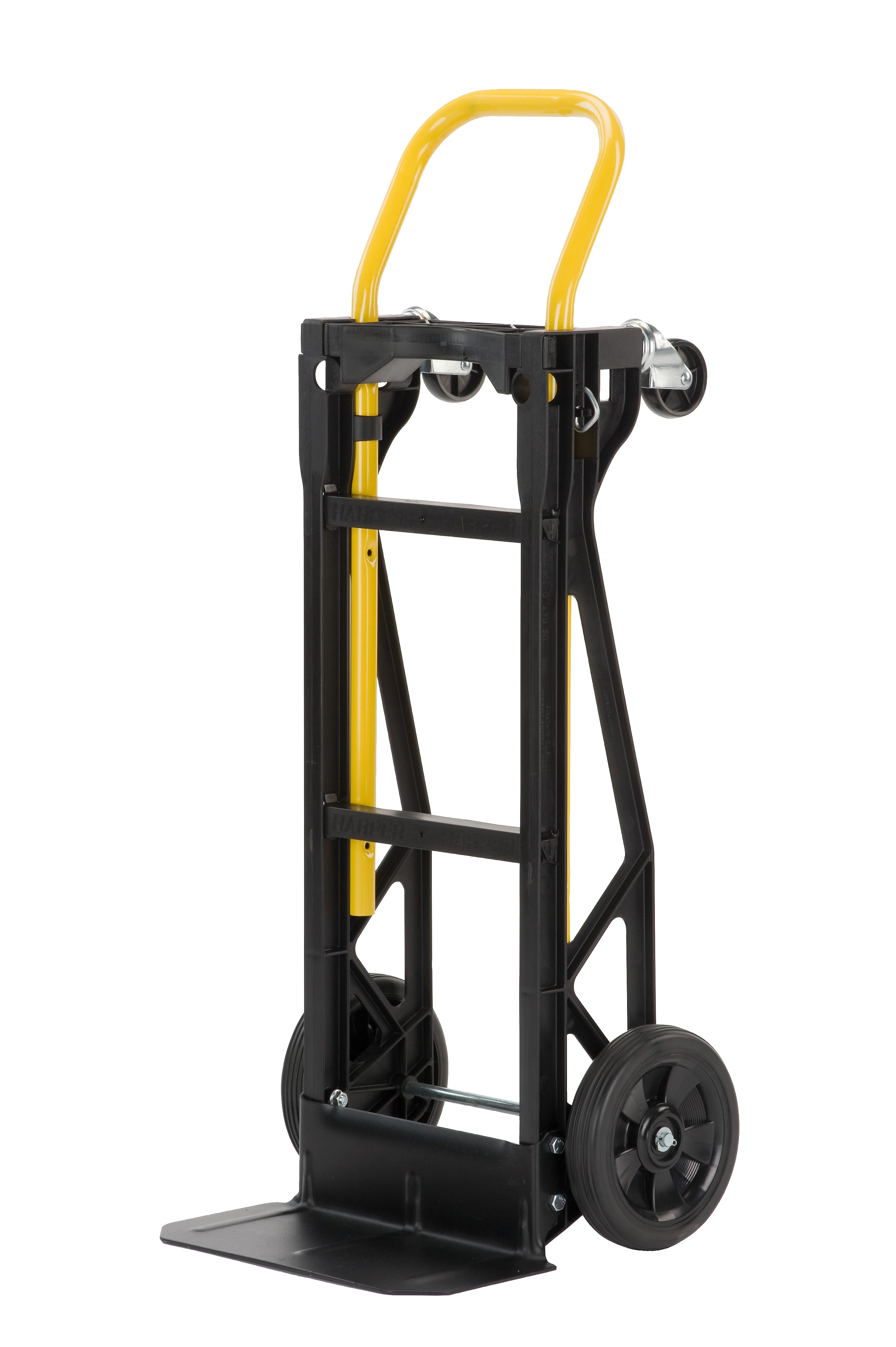 The Harper Trucks nylon truss frame is 30% lighter than steel and designed for maximum strength. The hand truck has a 300 pound vertical capacity and 400 pound platform capacity.