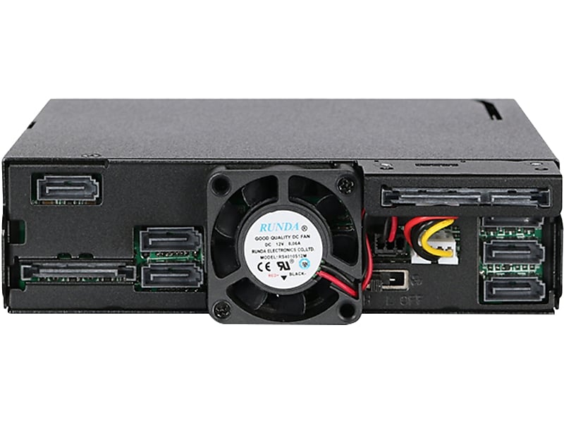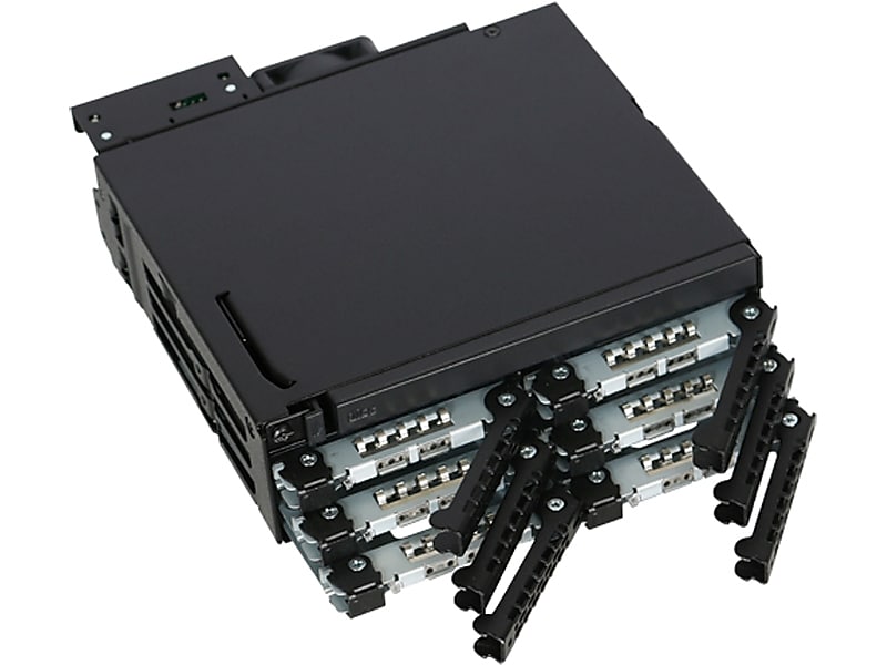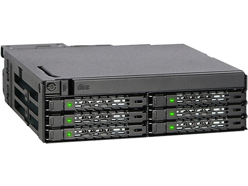 Introducing the Icy Dock ToughArmor ruggedized mobile rack for hot-swapping 6x SATA/SAS SSDs and HDDs or Ultra-Slim 9.5mm CD/DVD/Blu-ray ROM optical disk drive reader for the external 5.25" bay. Featuring industrial full-metal construction inside and out, and designed for commercial applications such as military and medical systems, airborne and shipboard PCs, in-vehicle systems, servers, workstations, and mobile computer systems. Maintain optimal drive temperatures with the user-configurable 40mm cooling fan and plenty of ventilation holes throughout the enclosure. Advanced removable trays with anti-vibration protect drives in harsh environments, and built-in individual status LEDs give you drive updates at a glance.