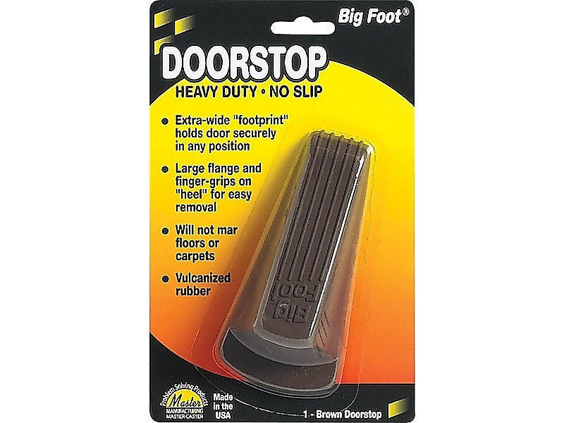 Implement an open-door policy in your office with this Master Big Foot doorstop. The extra-wide design prevents slipping to keep doors securely in place, while the impact-resistant vulcanized rubber construction resists crushing and prevents scratches on floors. The brown color lends a professional look to hospitals, schools and offices. This Master Big Foot doorstop is easy to put in place, providing a convenient solution for positioning doors open or closed.
