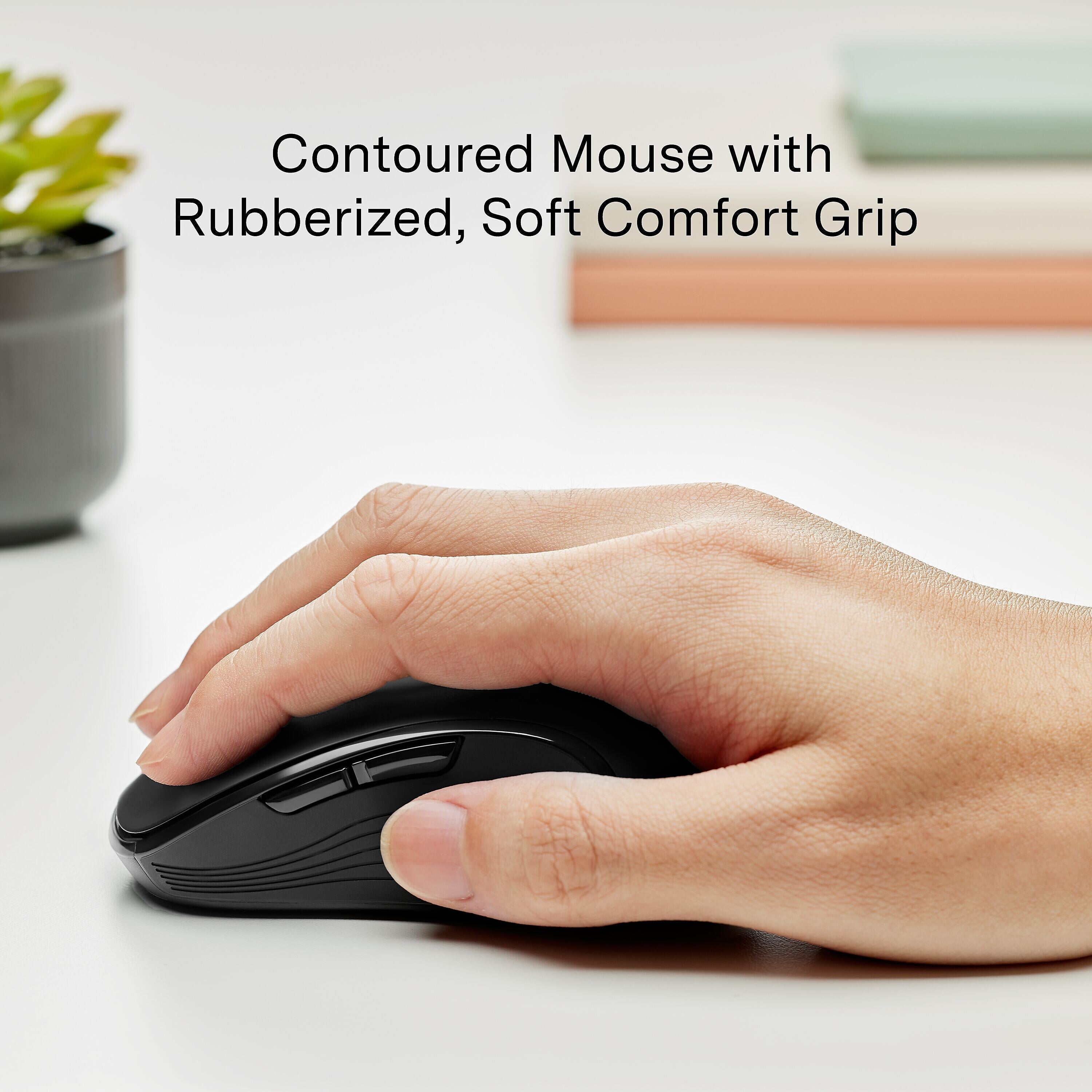 Get more done at the office with this wireless optical mouse. Supported resolutions of up to 3200 dpi grant precise cursor control and reliable tracking, and the 2.4GHz wireless connectivity ensures a stable and reliable wireless connection of up to 23'. The battery-saving sleep mode helps extend battery life when the mouse is not in use. This NXT Technologies™ wireless optical mouse boasts a rubberized soft comfort grip that keeps your palm feeling comfortable even with long hours of use.