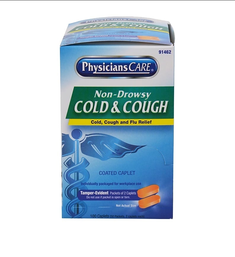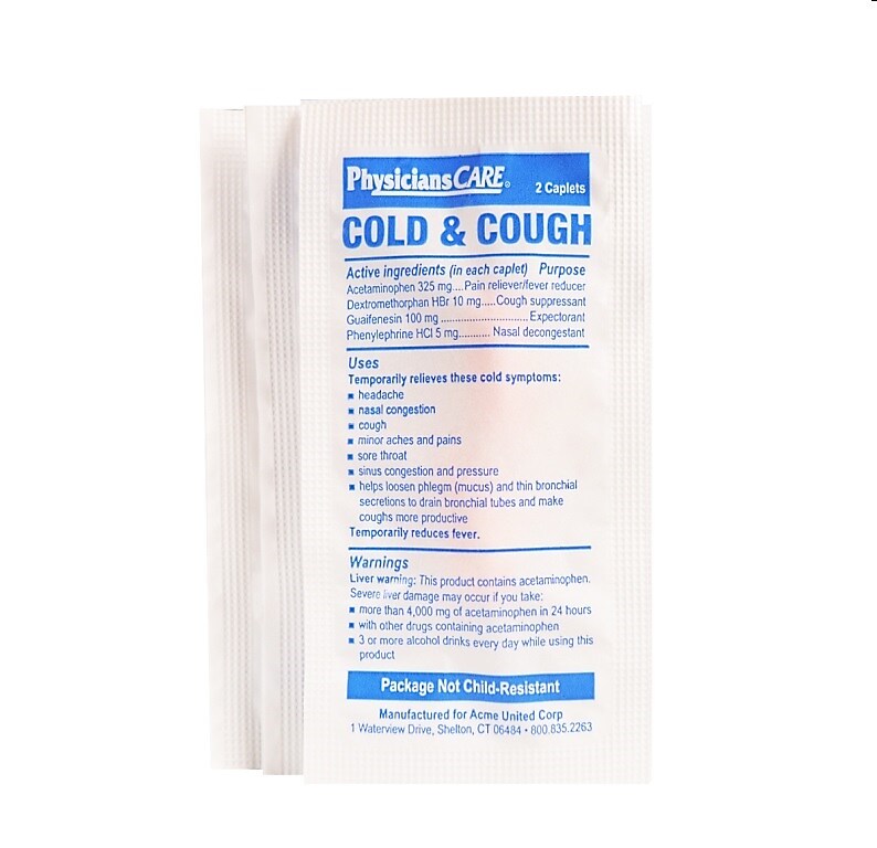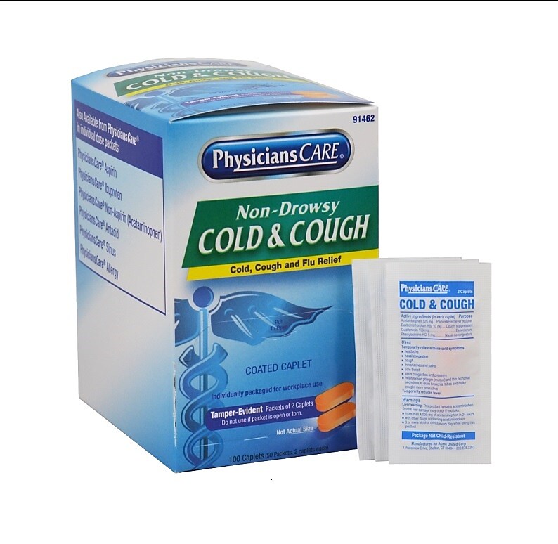 Keep cold and flu symptoms in check with this cough and cold medicine. Packaged in a perforated box with 50 individually sealed doses, this medicine is perfect for replenishing first aid kits, supplying office cabinets and other medicine dispensaries. In addition to pain relief, this medicine acts as a cough suppressant, expectorant and nasal decongestant to keep you going. This PhysiciansCare cough and cold medicine contains the same active ingredients as leading brands, so you can count on effective relief.