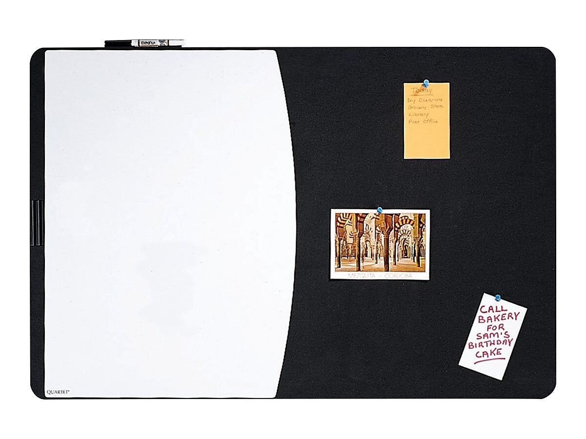 Stay organized and share ideas with this 35 x 23.5-inch combination board, which is designed to fit into your cubicle. The whiteboard and black foam surface board offers double functionality. Mount the whiteboard easily to cubicle fabric-covered walls or standard walls.