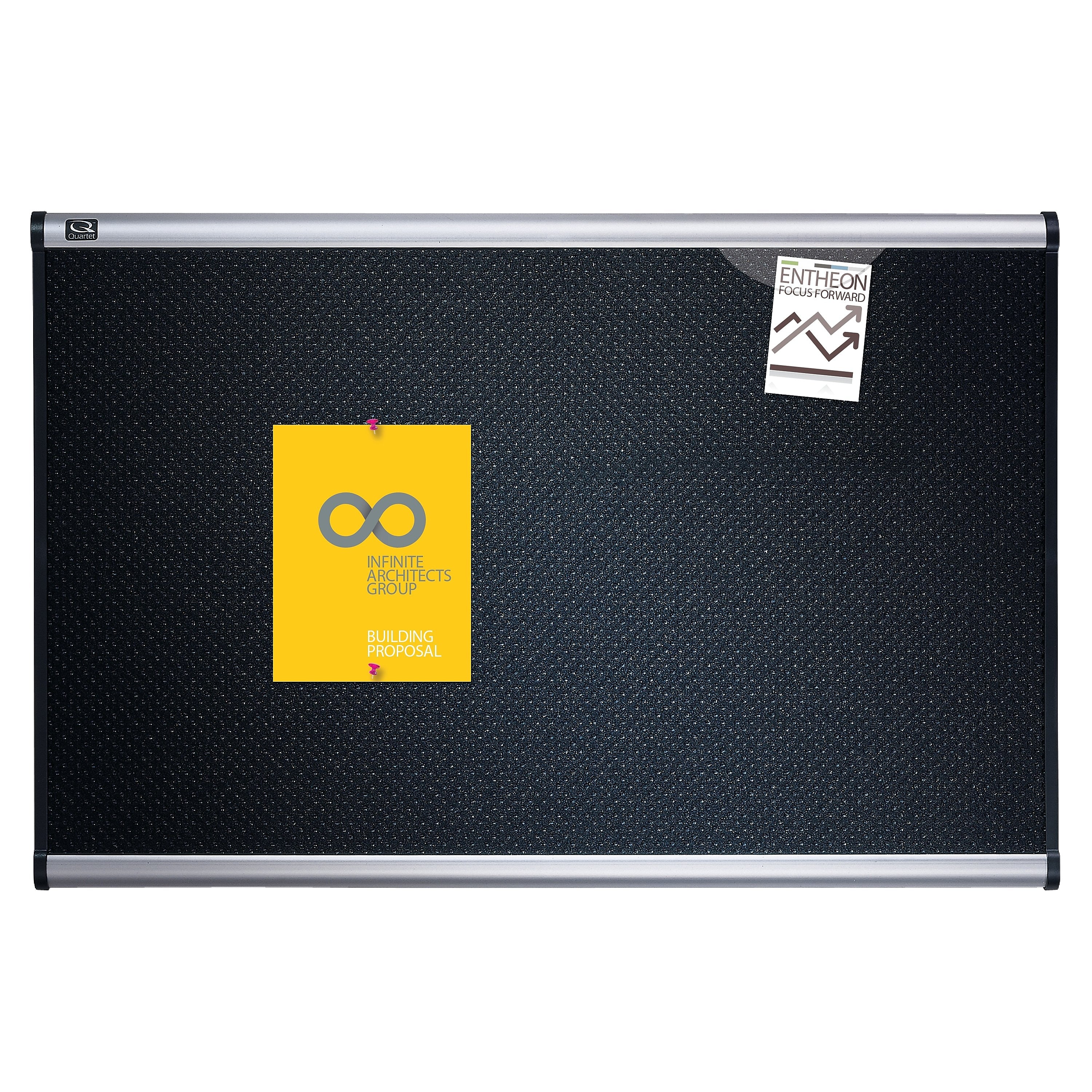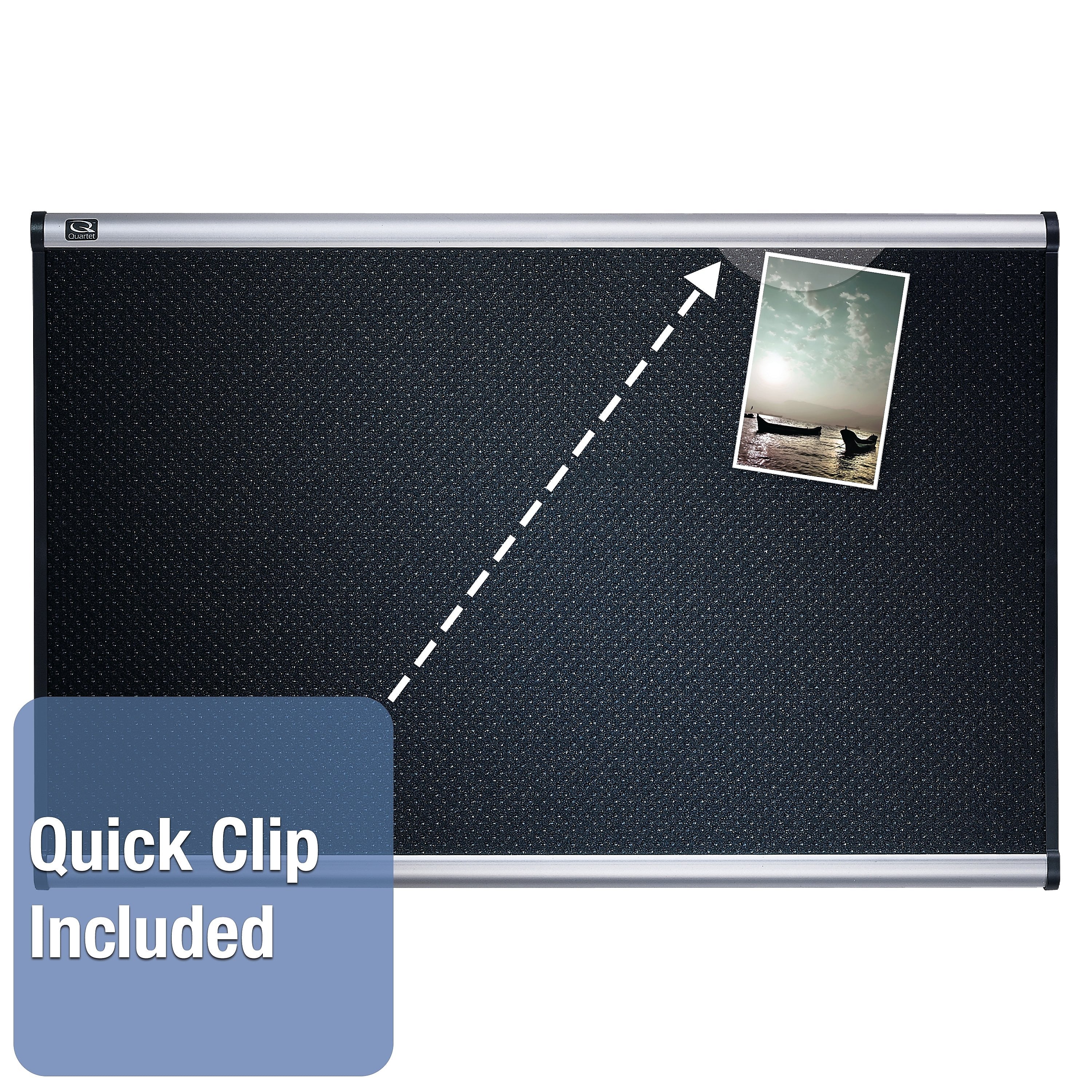 Use this large bulletin board to create a quick and convenient display of all important documents, memos, schedules, and more. This Quartet Prestige bulletin board features a self-healing, embossed foam backed by high-density fiberboard that firmly holds pins and a silver aluminum frame to help protect against wear and tear. Set up is easy with Quartet quick clips to secure material without damage and pass-through mounting hardware included.