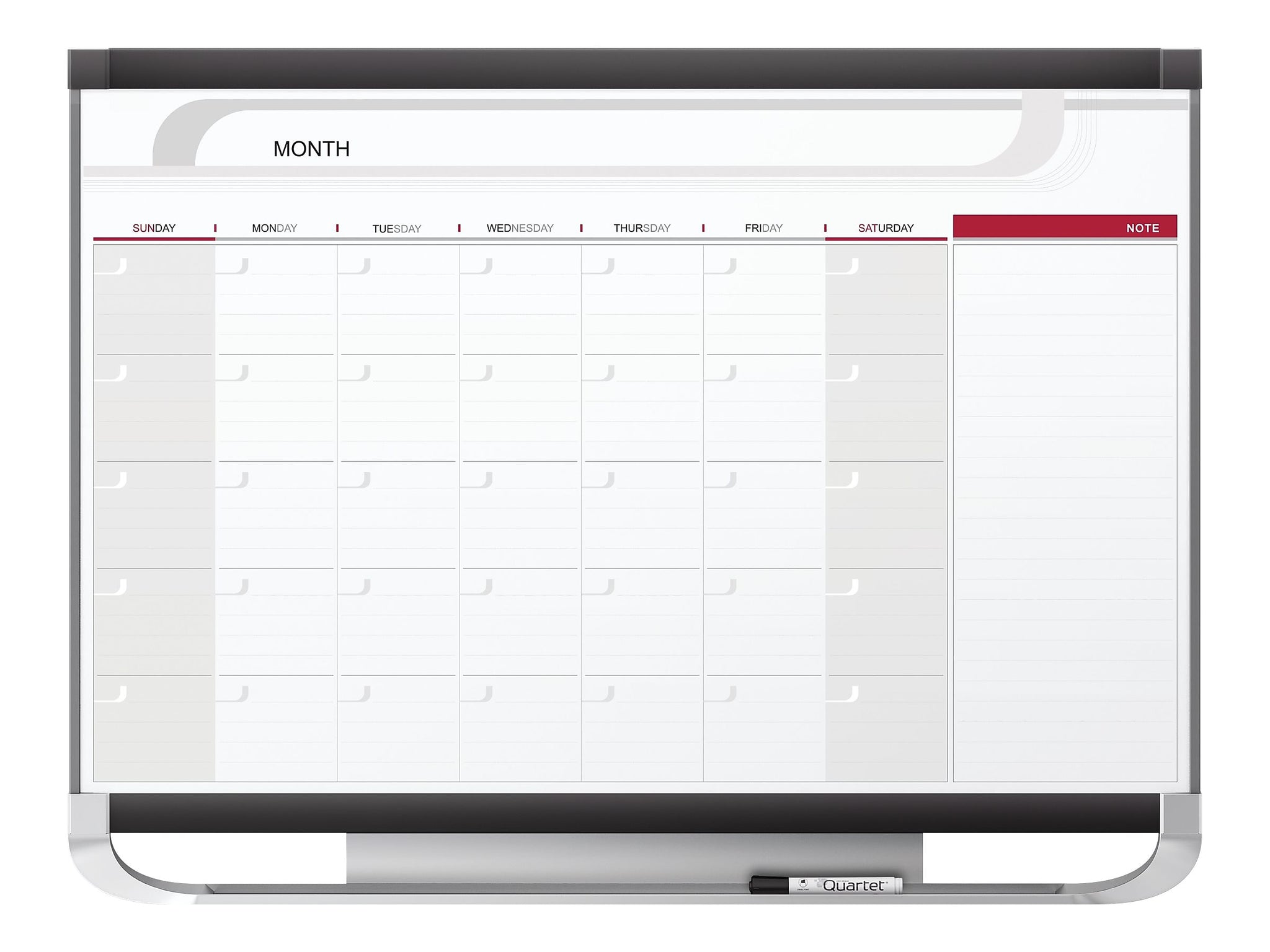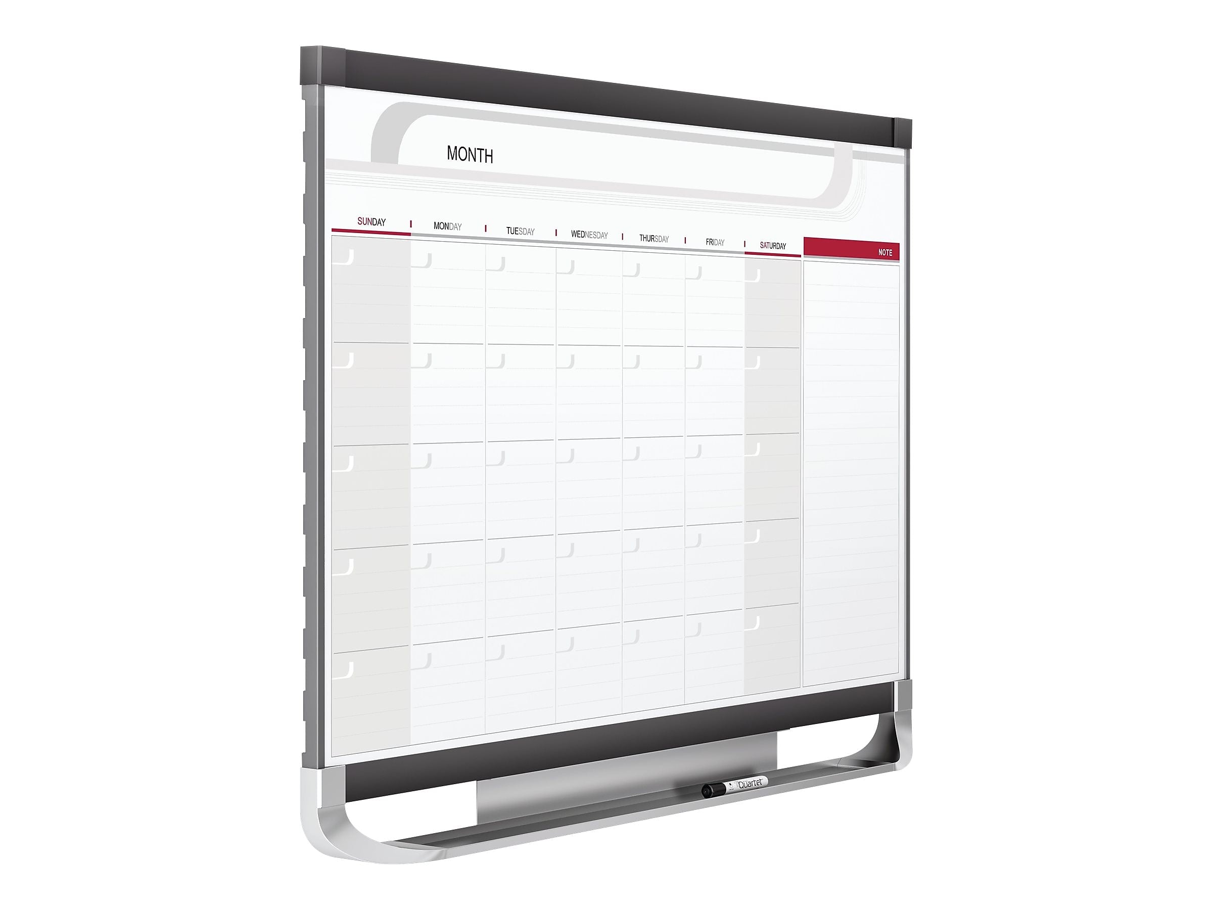 Stay on top of client meetings, events, and other upcoming appointments with this magnetic monthly calendar board. With a durable stain-resistant design, this calendar board stays clean, even with consistent use. This Quartet Prestige graphite-frame calendar board has a full-length tray for markers and other accessories and includes mounting hardware, so you can assemble it quickly.