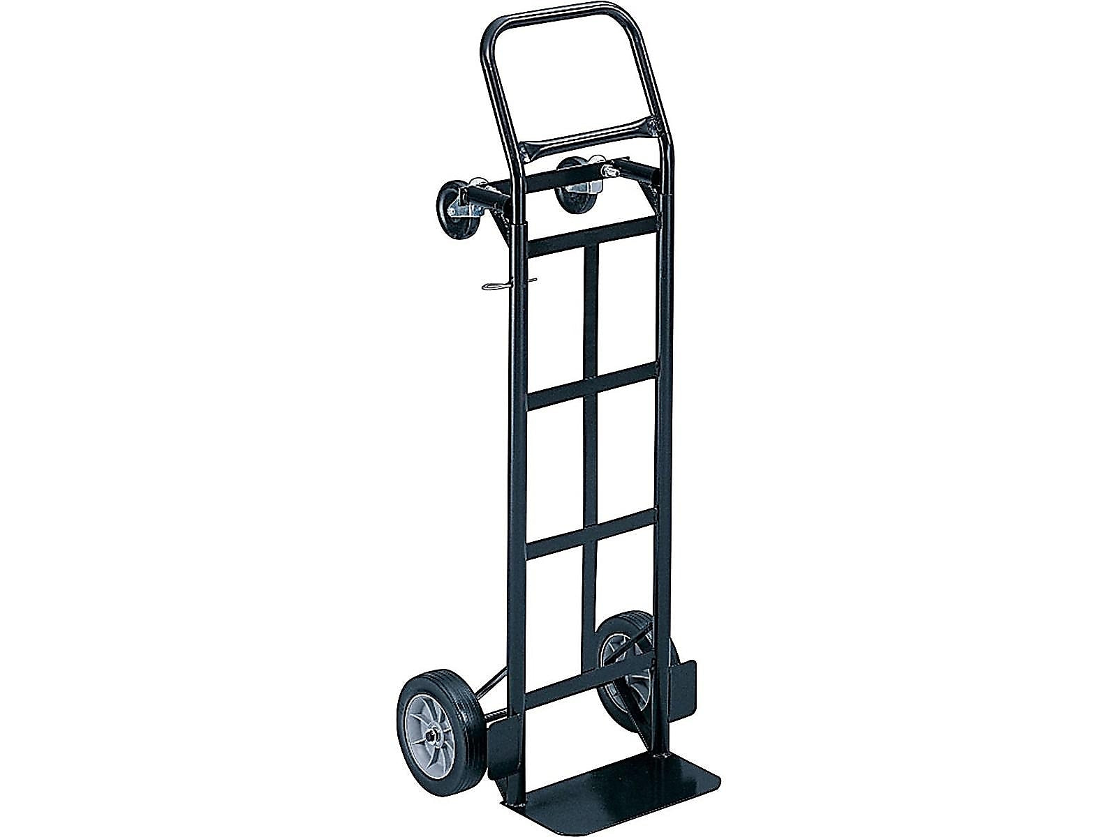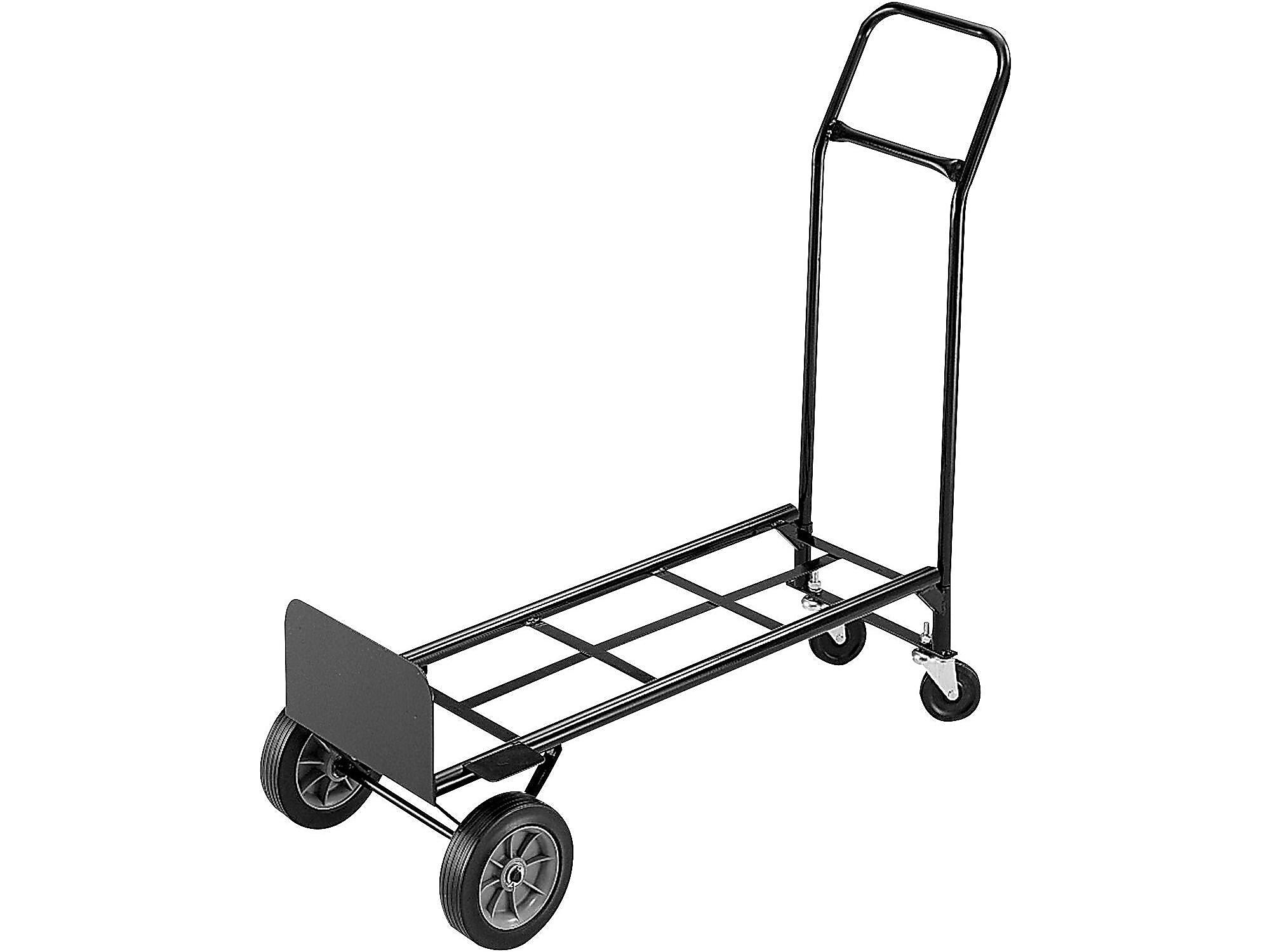 Move heavy boxes or large furniture items safely with this Safco Tuff Truck convertible hand truck. The helpful shop cart converts from a two-wheeled dolly to a four-wheeled platform truck quickly and easily by sliding the handle out of one set of tubes into the other. The 8-inch solid rubber wheels are durable and feature ball bearings for smooth rolling, even while loaded. This hand truck moves loads up to 400 pounds while on two wheels or up to 500 pounds by converting to four wheels. Easily slide under the load with the hand truck's 14 by 7-inch toe plate. This Safco Tuff Truck convertible hand truck helps you get tough moving jobs done fast, whether moving boxes, furniture or appliances.
