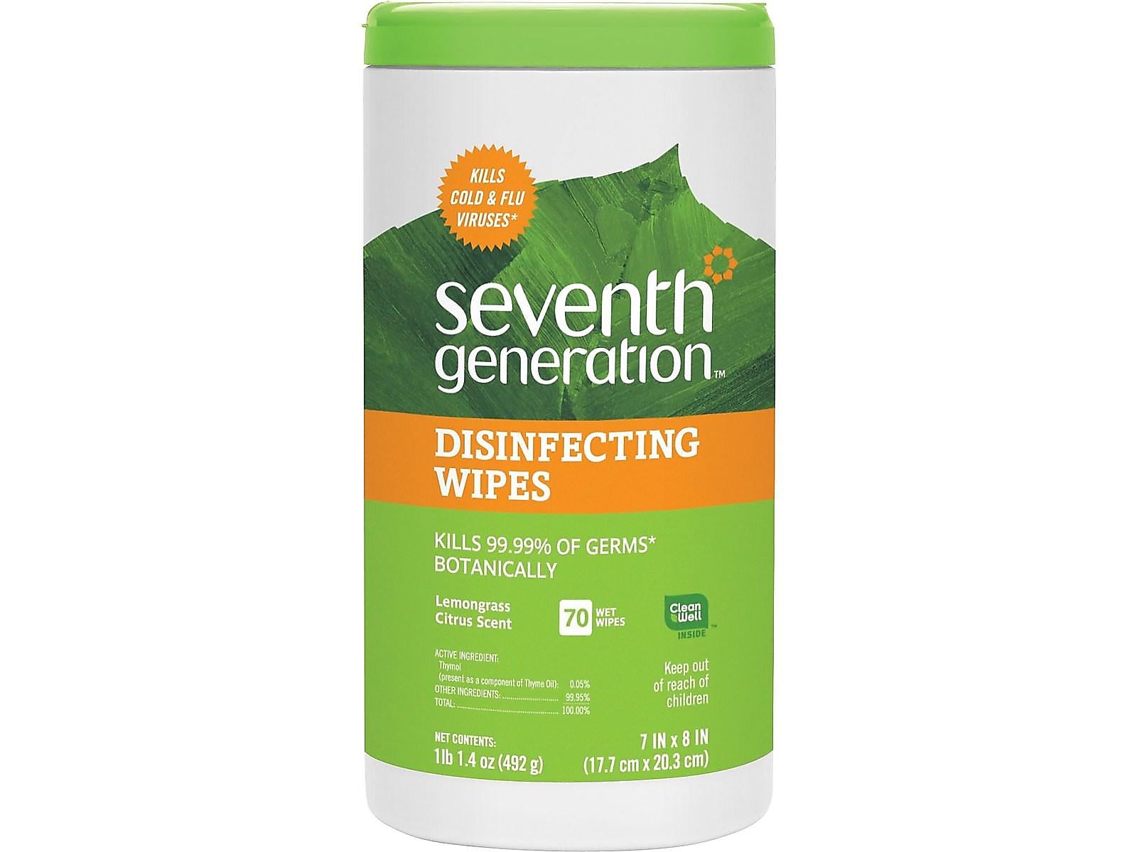 Seventh Generation Disinfecting Wipes, Citrus and Lemongrass Scent, 70 Wipes/Container, 70/Pack