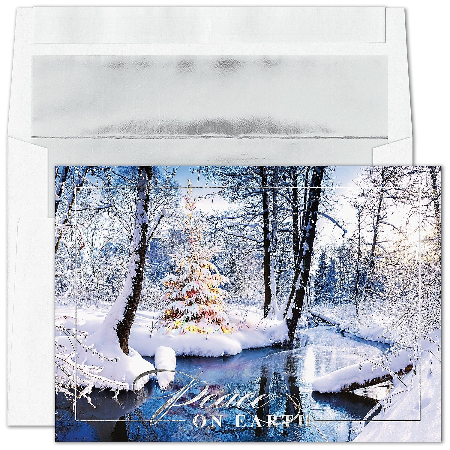 "Snowy Serenity" Holiday Card w/ Silver Lined White Envelope, 100/BX