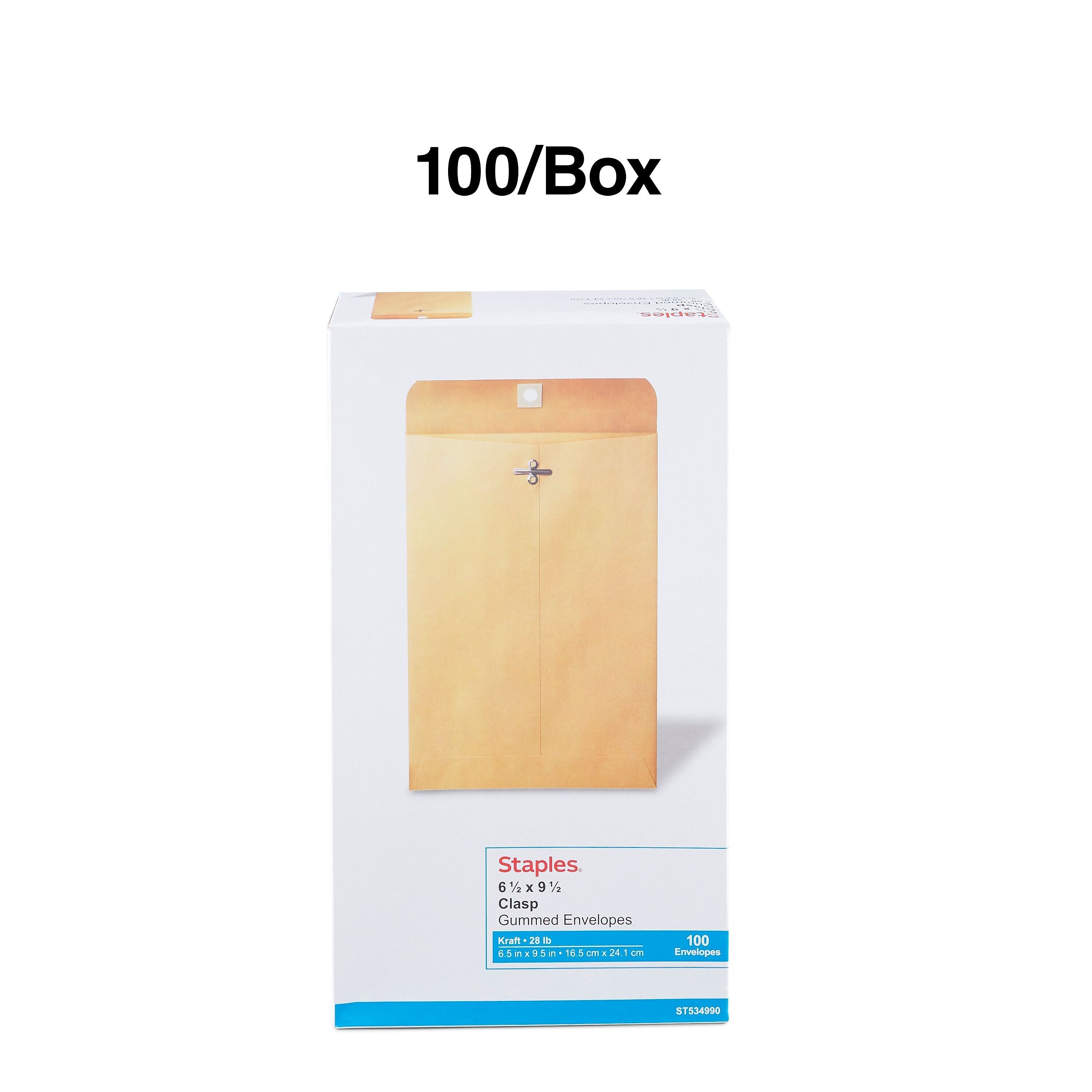 Keep essential documents safe with these Staples kraft brown catalog clasp envelopes. Each envelope has a reusable metal clasp and moistenable glue strip for additional sealing power, so you don't have to worry about them opening during transit or while in storage. These Staples kraft brown catalog clasp envelopes are made with heavy-duty 28-pound stock, helping them stand up to rough handling.