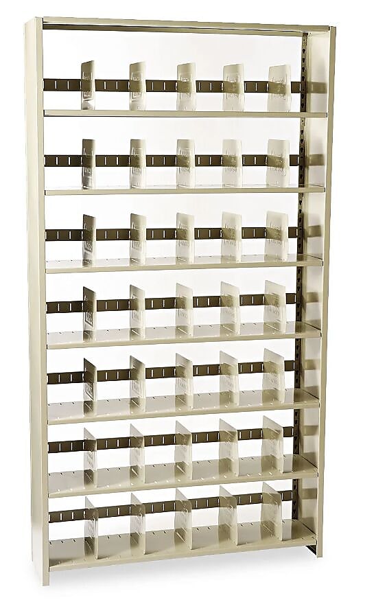 Provides a single freestanding unit or use with Add-On Units for a complete wall system. Units snap together without tools or fasteners. All shelves are adjustable. Order one Starter Set and any number of matching height Add-On Units. Two "L" uprights for the frame. Includes adjustable 12" deep shelves, shelf supports and five file dividers per shelf. 200- to 300-lb. load capacity per shelf with weight evenly distributed. Heavy-duty rolled steel construction with sand finish.