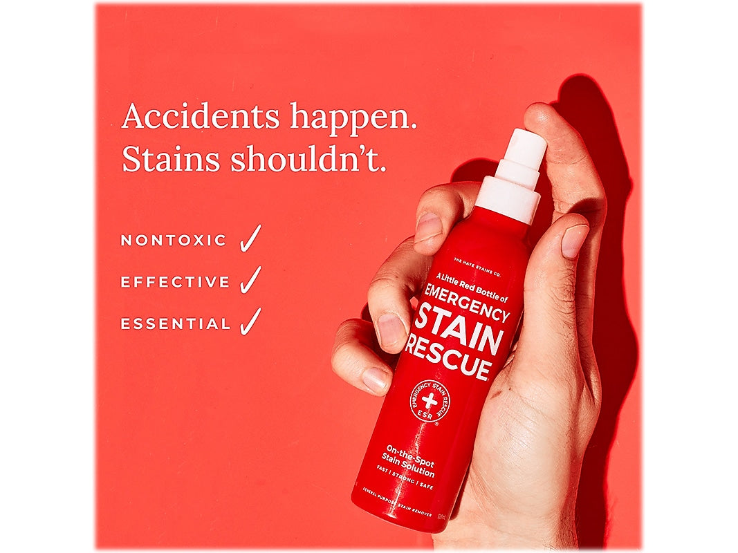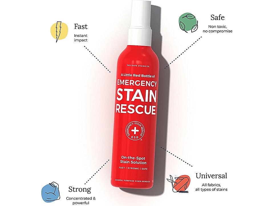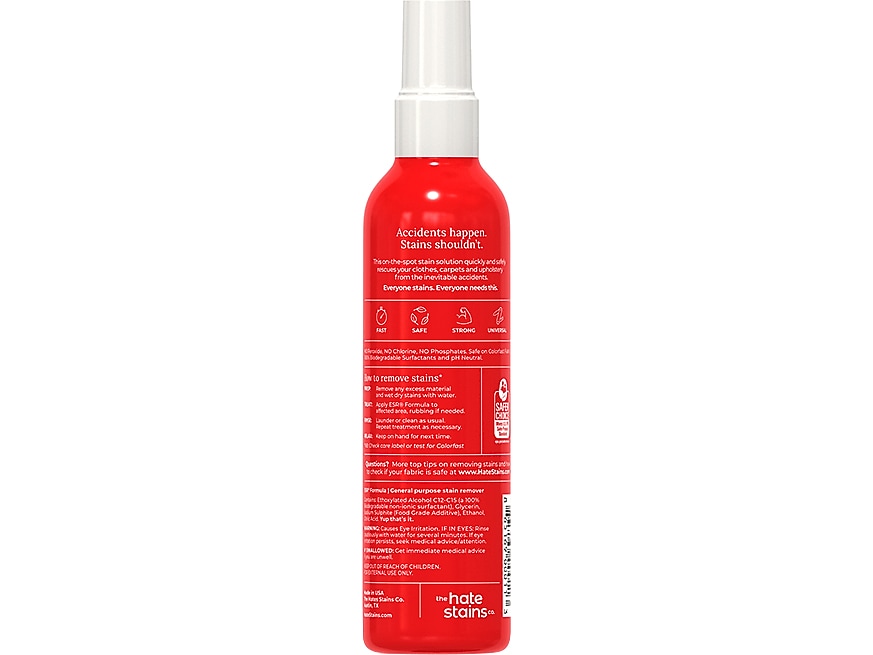 Accidents happen, stains shouldn't. The Hate Stains Co. Emergency Stain Rescue on-the-spot stain solution quickly and safely rescues your clothes, carpets, and upholstery from life's inevitable accidents.
