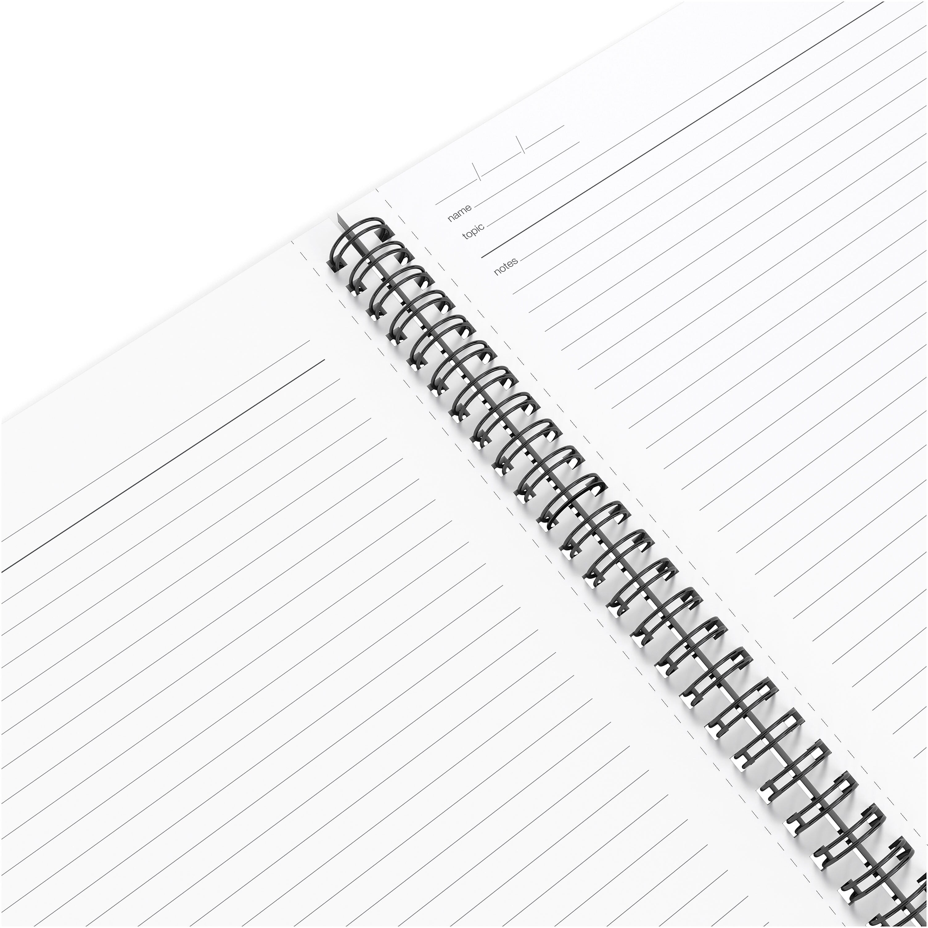 A meeting agenda template printed on each inner page provides proper space and guidance for detailed planning. This TRU RED™ medium black meeting notebook is bound with a durable double coil to stand up to the rigors of daily use.
