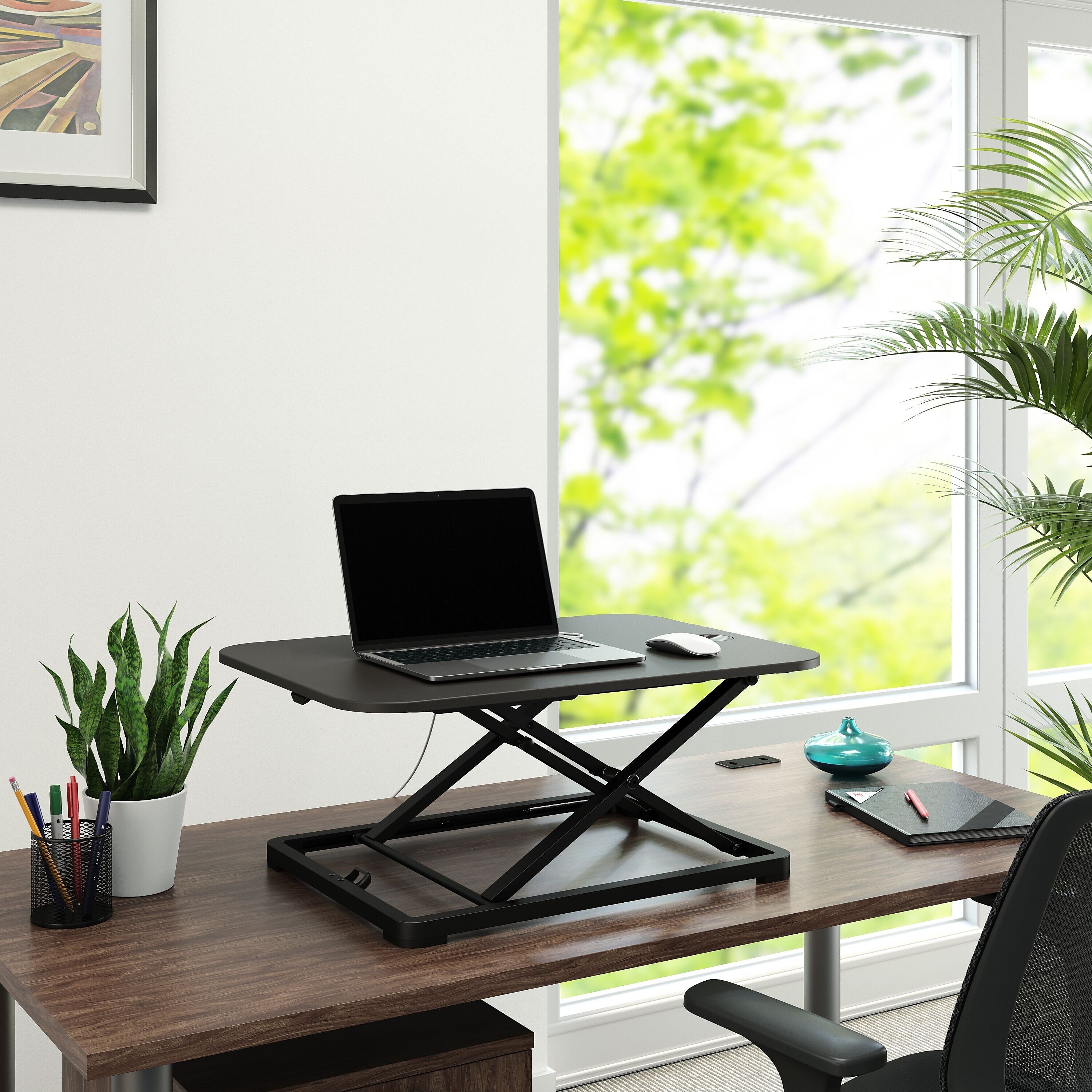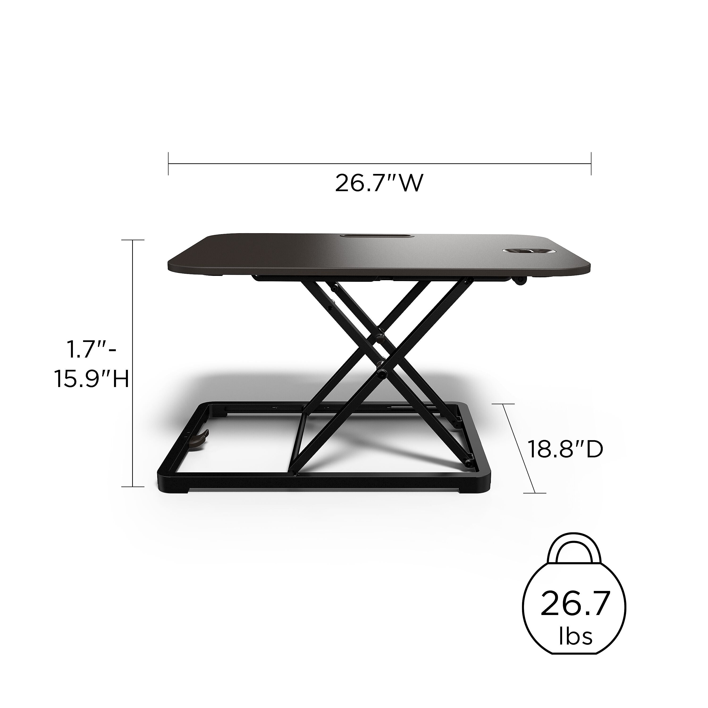 Tilt your notebook and work comfortably with this laptop riser. The black finish complements your color scheme, while the lightweight tabletop design supports easy transportation and fits on a wide variety of office desks. A wide frame is compatible with most laptops and mobile devices. This Union & Scale 26.7" black portable laptop riser has an adjustable height to let you seamlessly switch between sitting and standing during work, and the sturdy construction accommodates monitors and other light accessories.