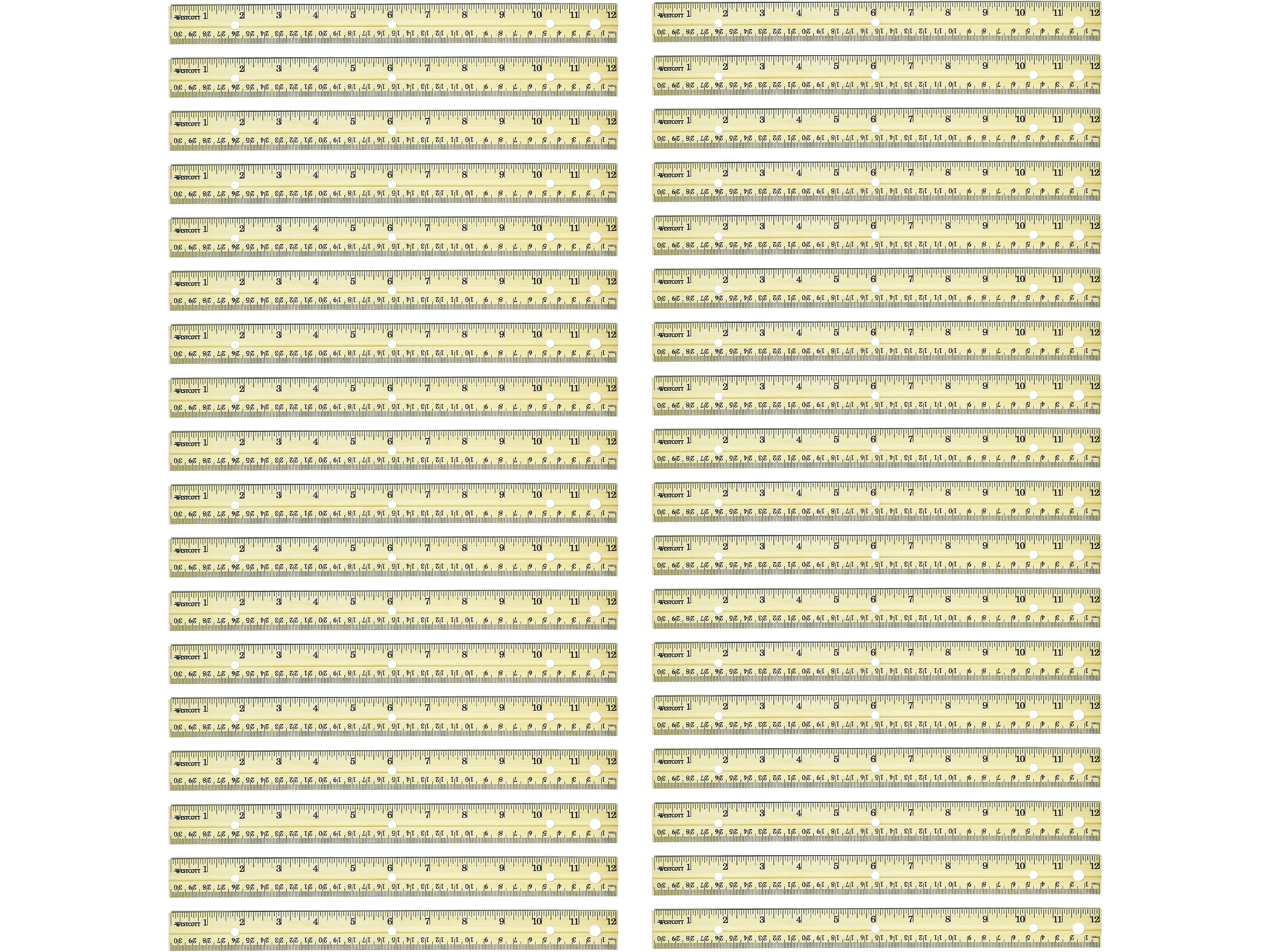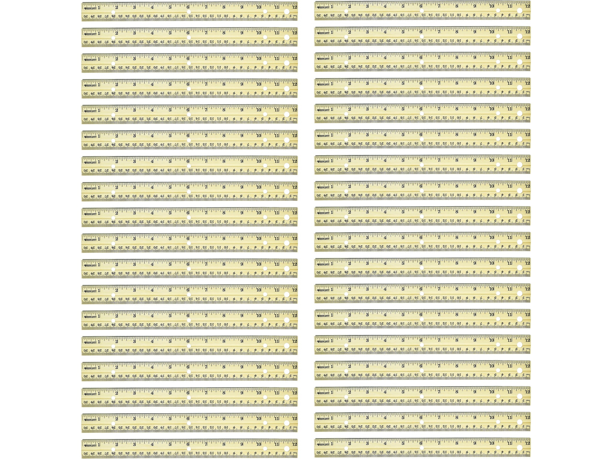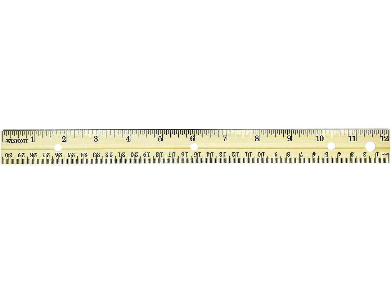 This Westcott ruler is made from wood with beveled edges. Ruler is hole-punched, features imperial and metric scales and is treated with a clear lacquer finish. Extra margins at the ends for clear starts and stops. Measures up to 12".